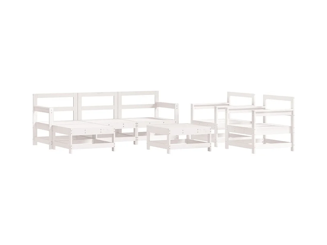 Salon de jardin 7 pièces Blanc Bois de pin massif