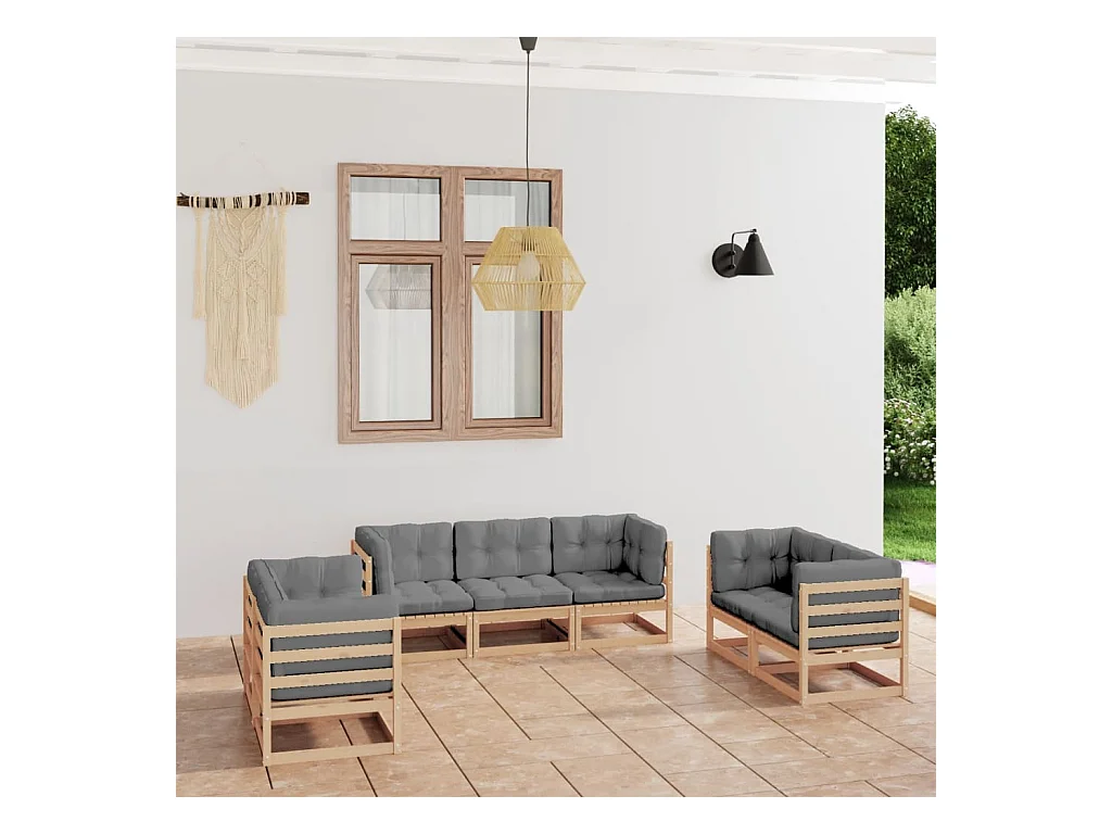Salon de jardin 7 pièces avec coussins gris Bois de pin
