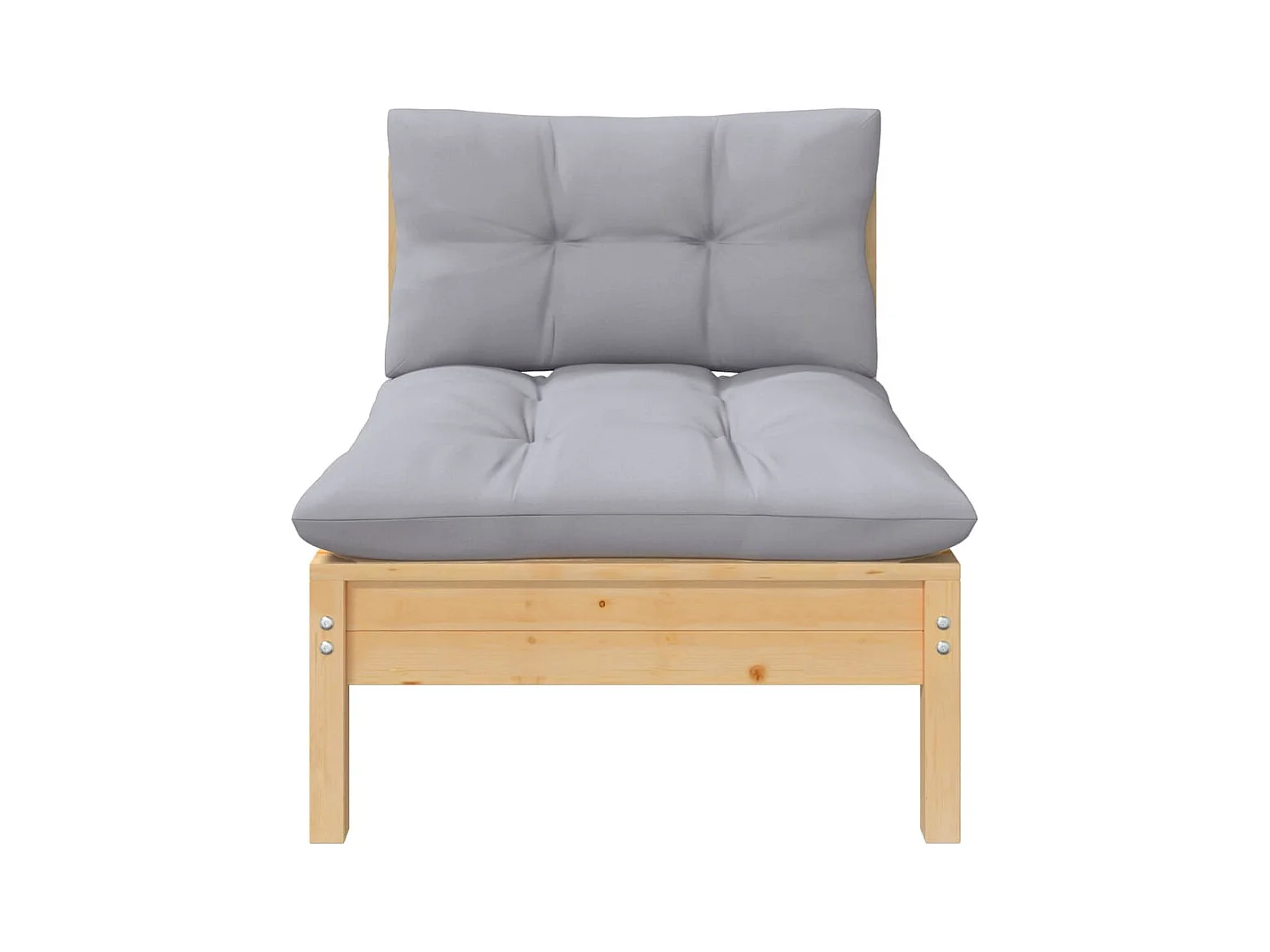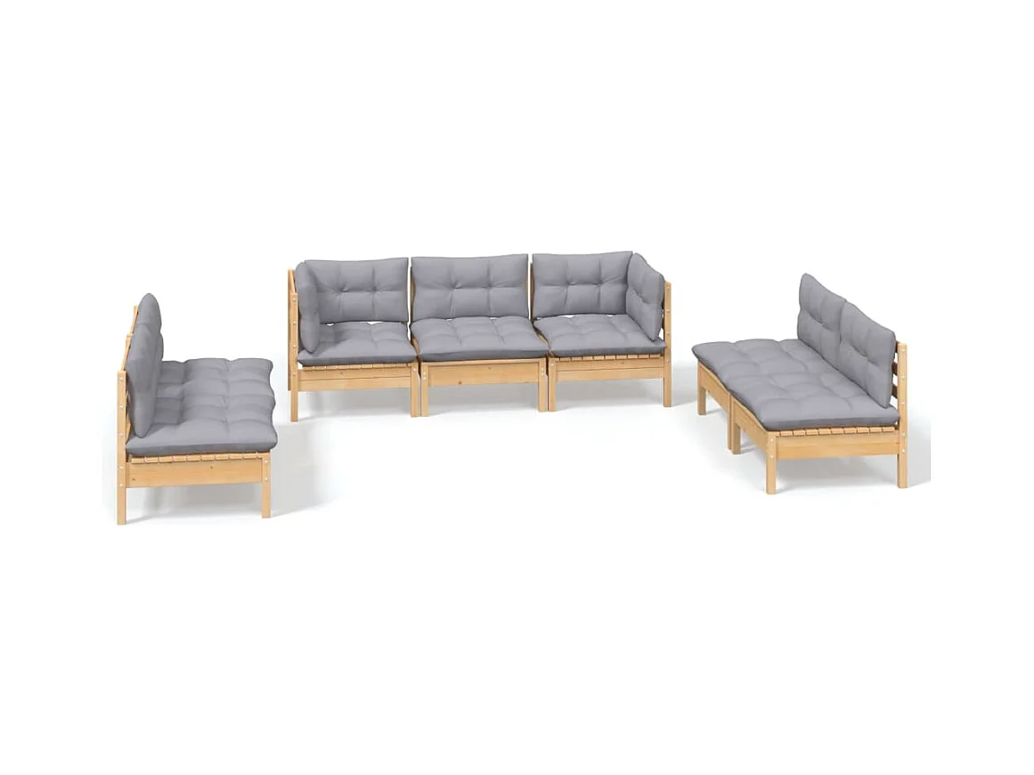 Salon de jardin 7 pièces avec coussins gris bois de pin