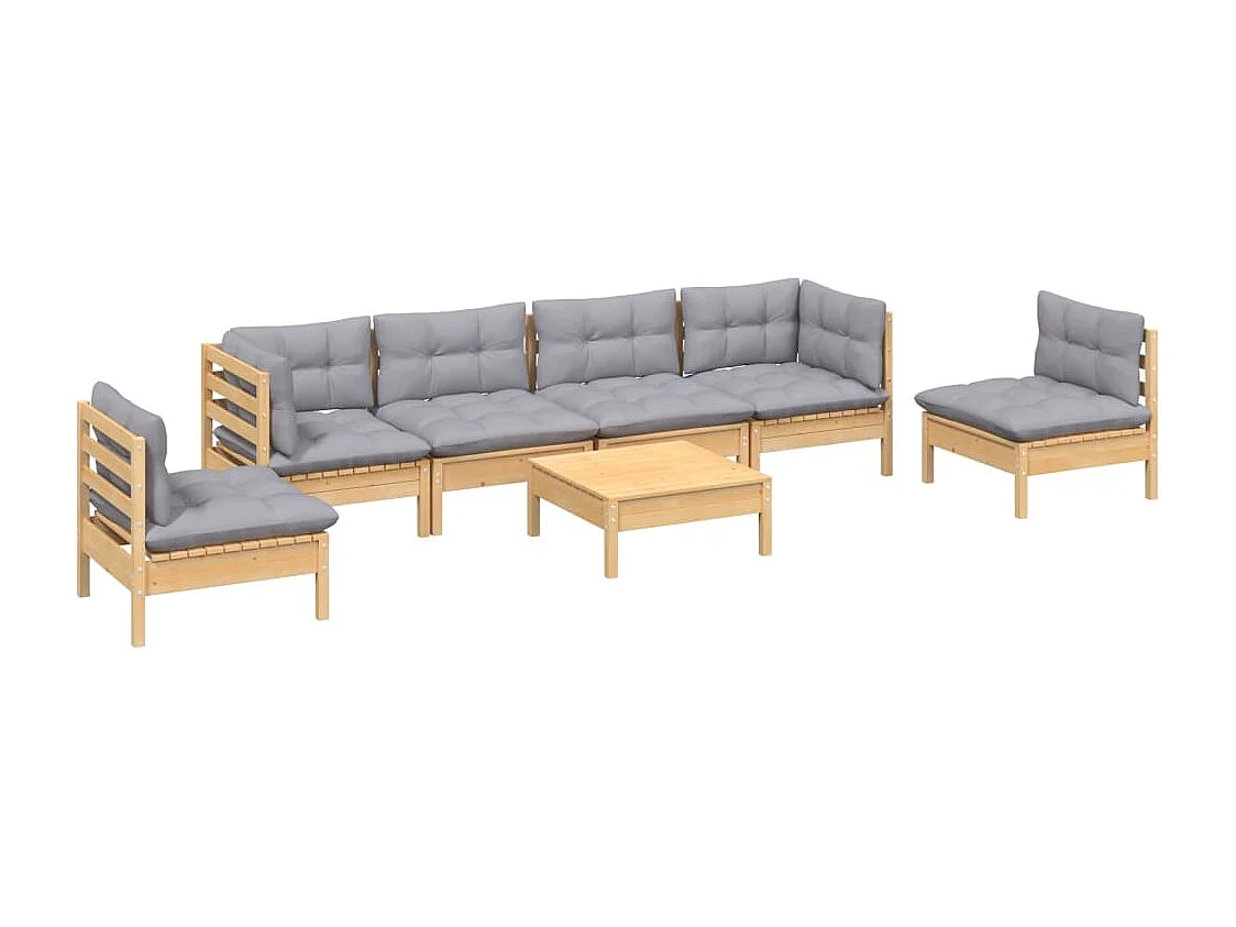 Salon de jardin 7 pièces avec coussins gris bois de pin massif