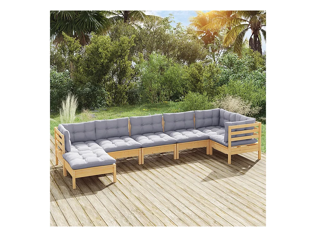 Salon de jardin 7 pièces avec coussins gris bois de pin