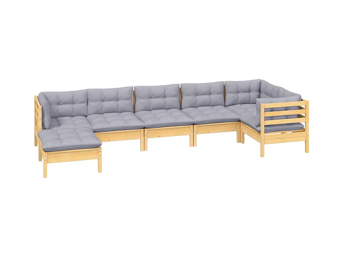 Salon de jardin 7 pièces avec coussins gris bois de pin massif