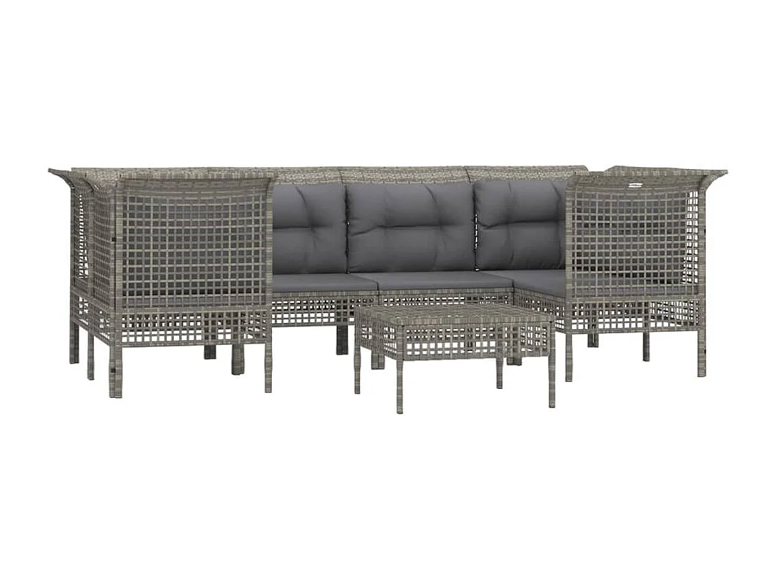 Salon de jardin 6 pcs avec coussins Gris Résine tressée BE81352