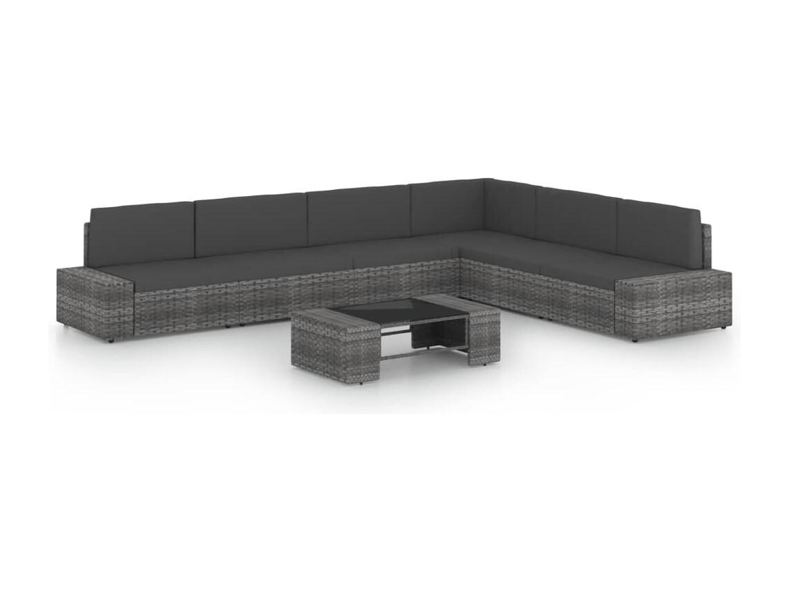 Salon de jardin 7 pièces avec coussins Gris Résine tressée