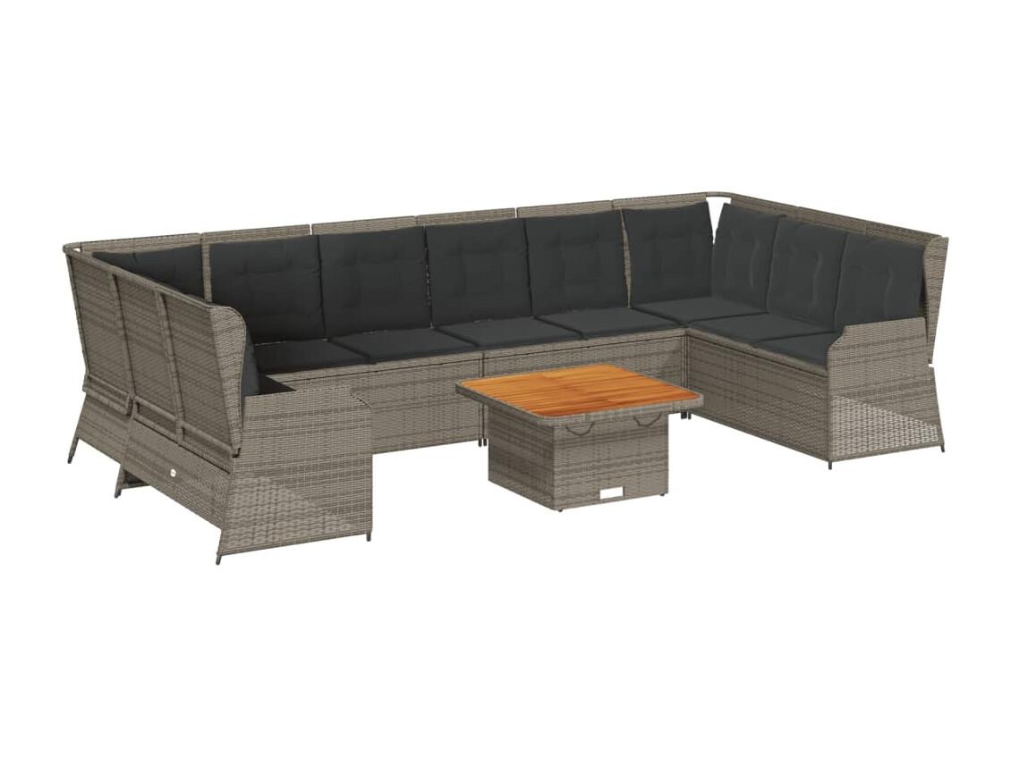 Salon de jardin 7 pièces avec coussins Gris Résine tressée