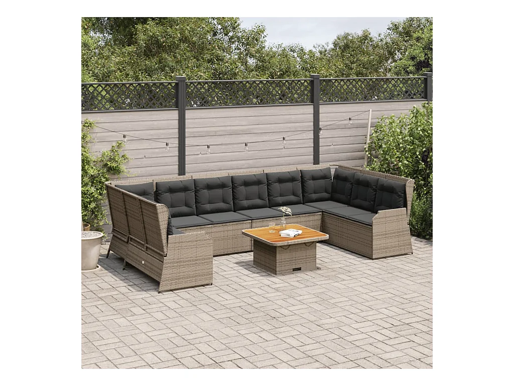 Salon de jardin 8 pièces avec coussins résine tressée gris