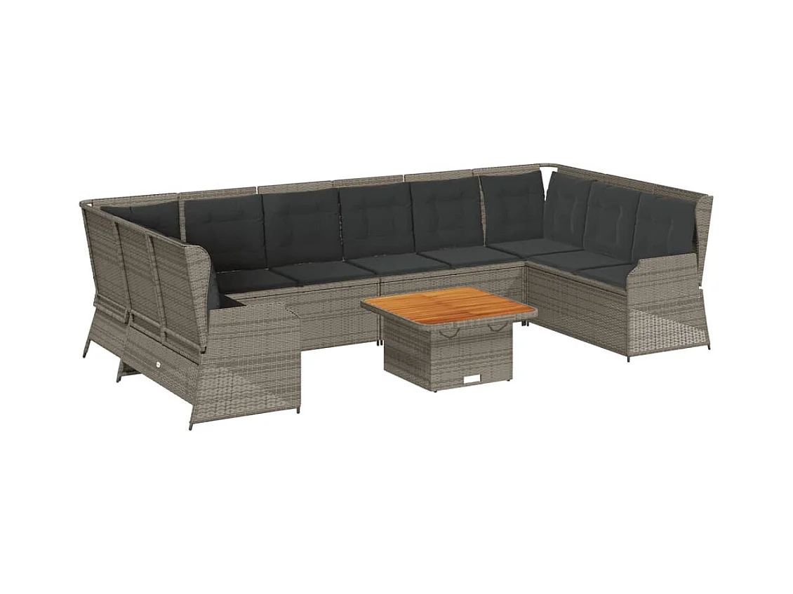 Salon de jardin 8 pièces avec coussins Résine tressée Gris