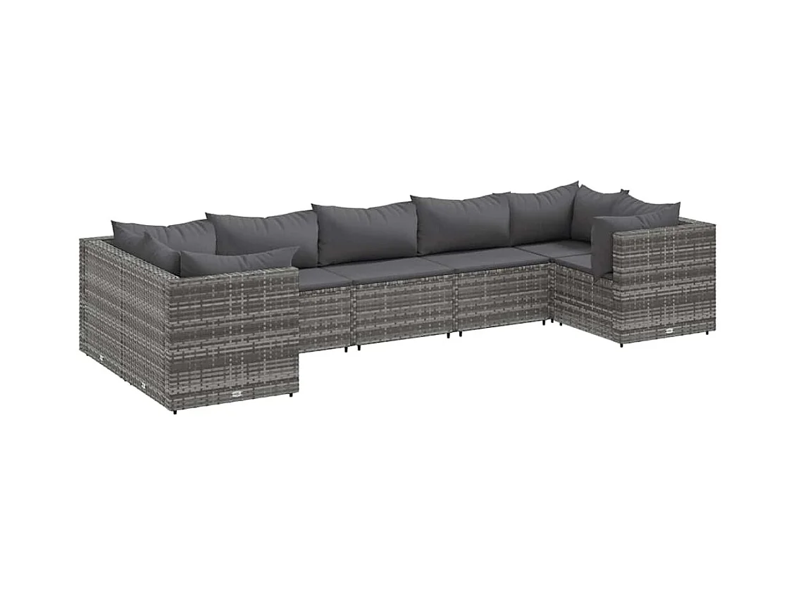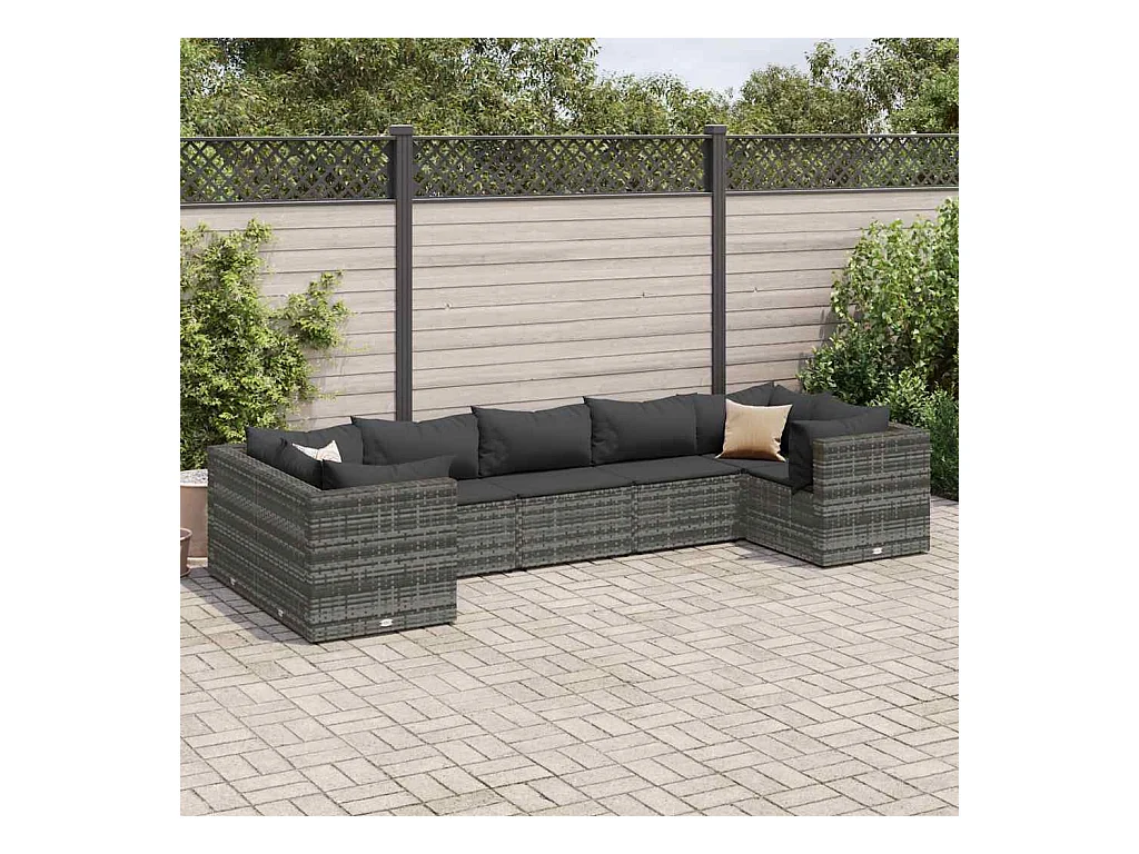 Salon de jardin 7 pièces avec coussins Gris Résine tressée