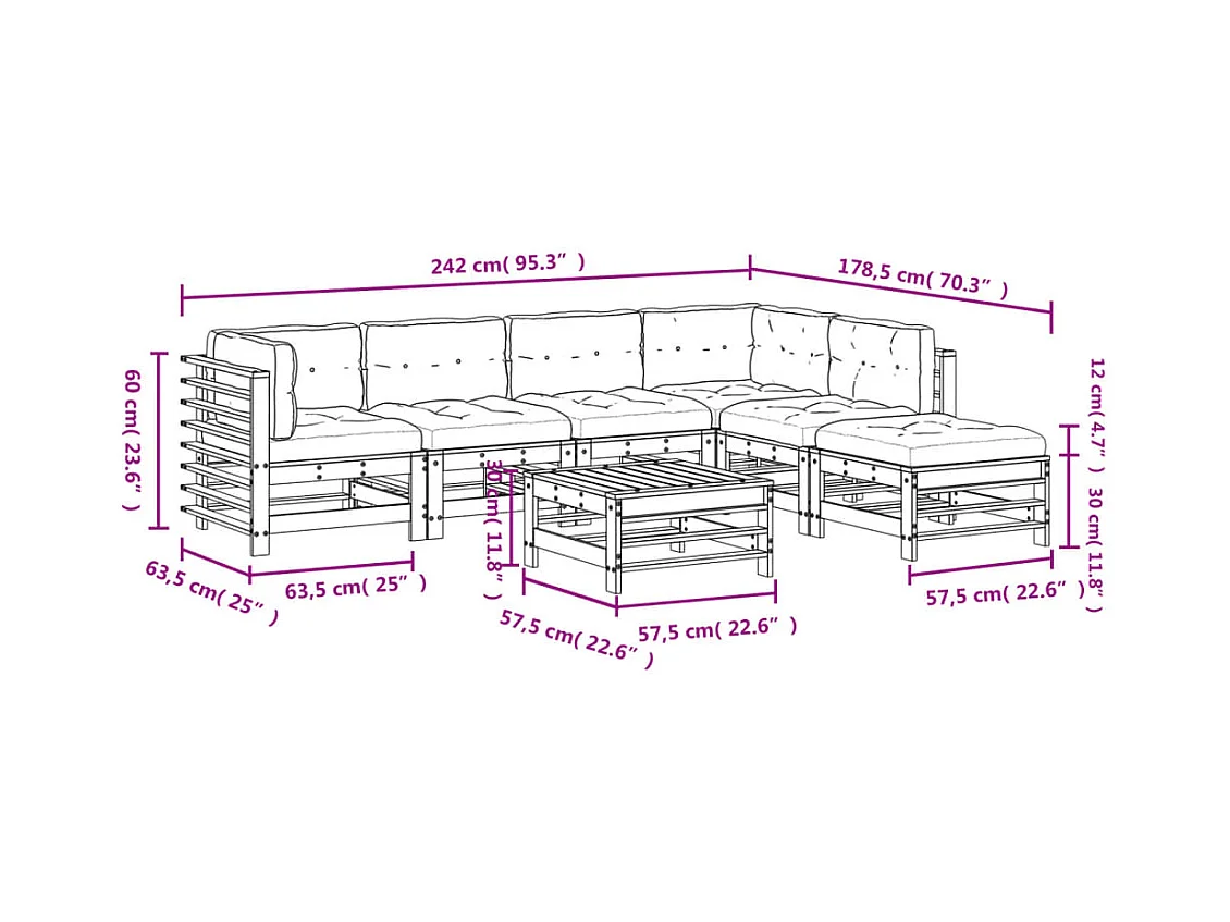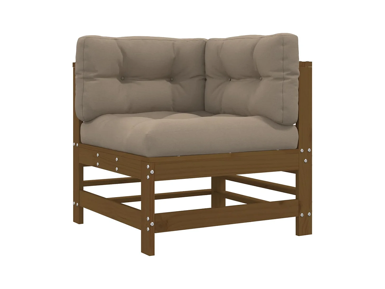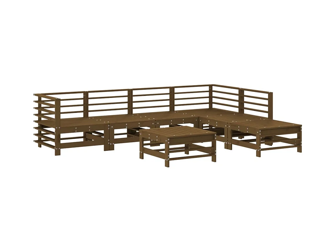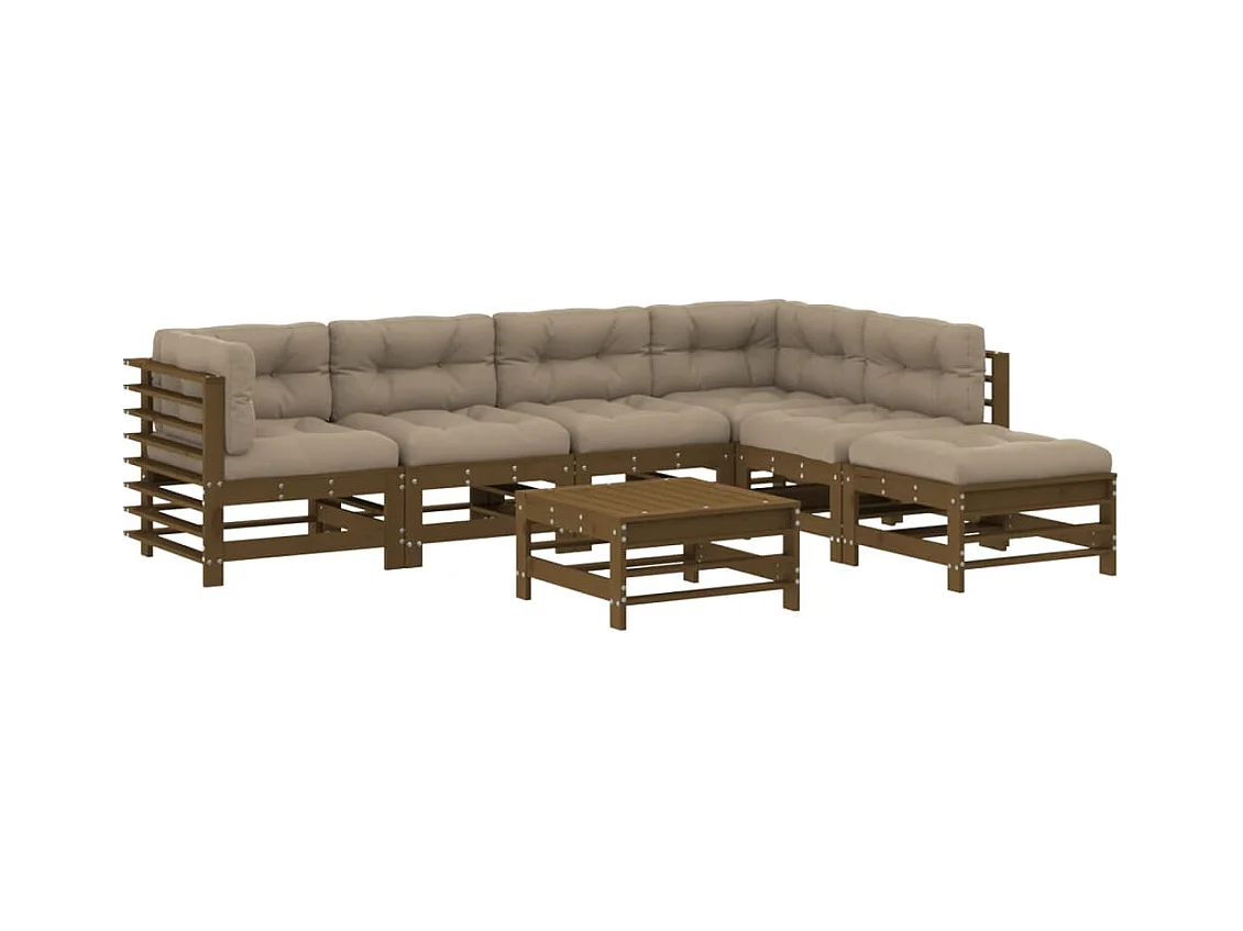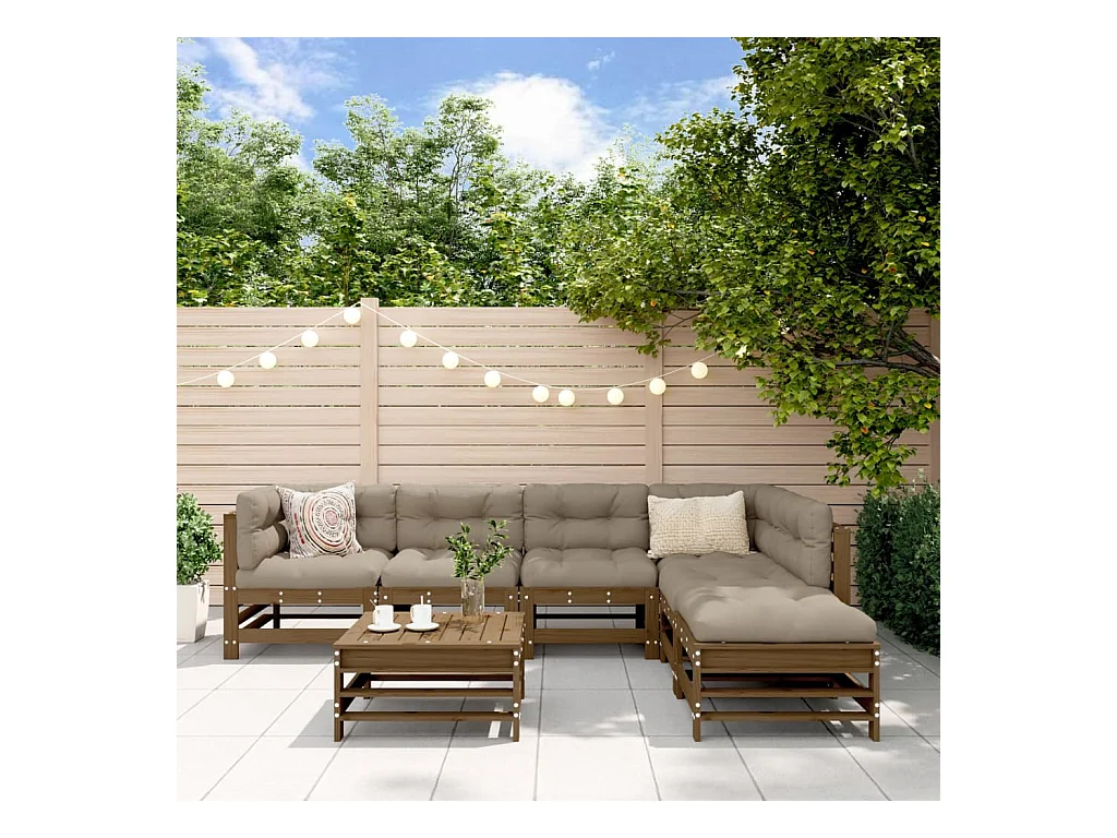 Salon de jardin 7 pièces avec coussins marron miel bois massif