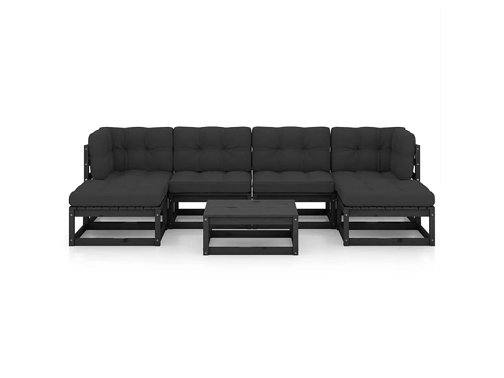 Salon de jardin 7 pièces avec coussins Noir Bois de pin
