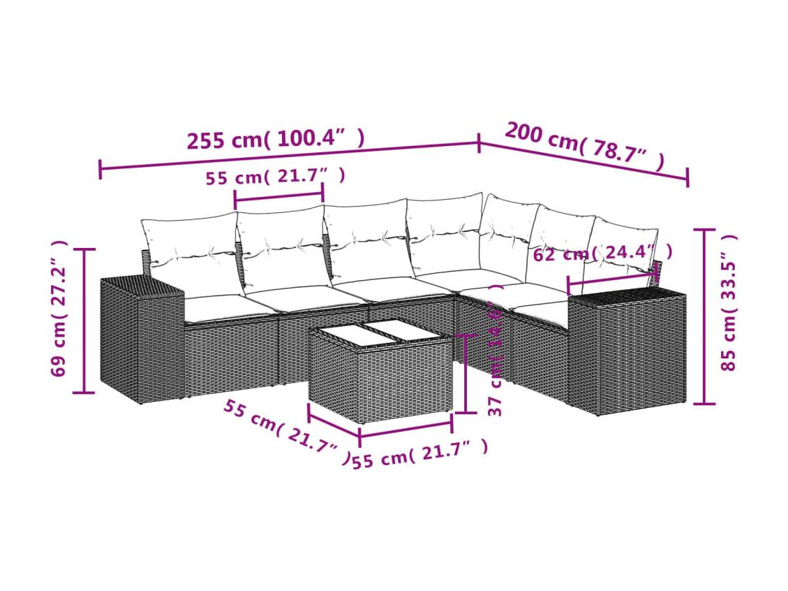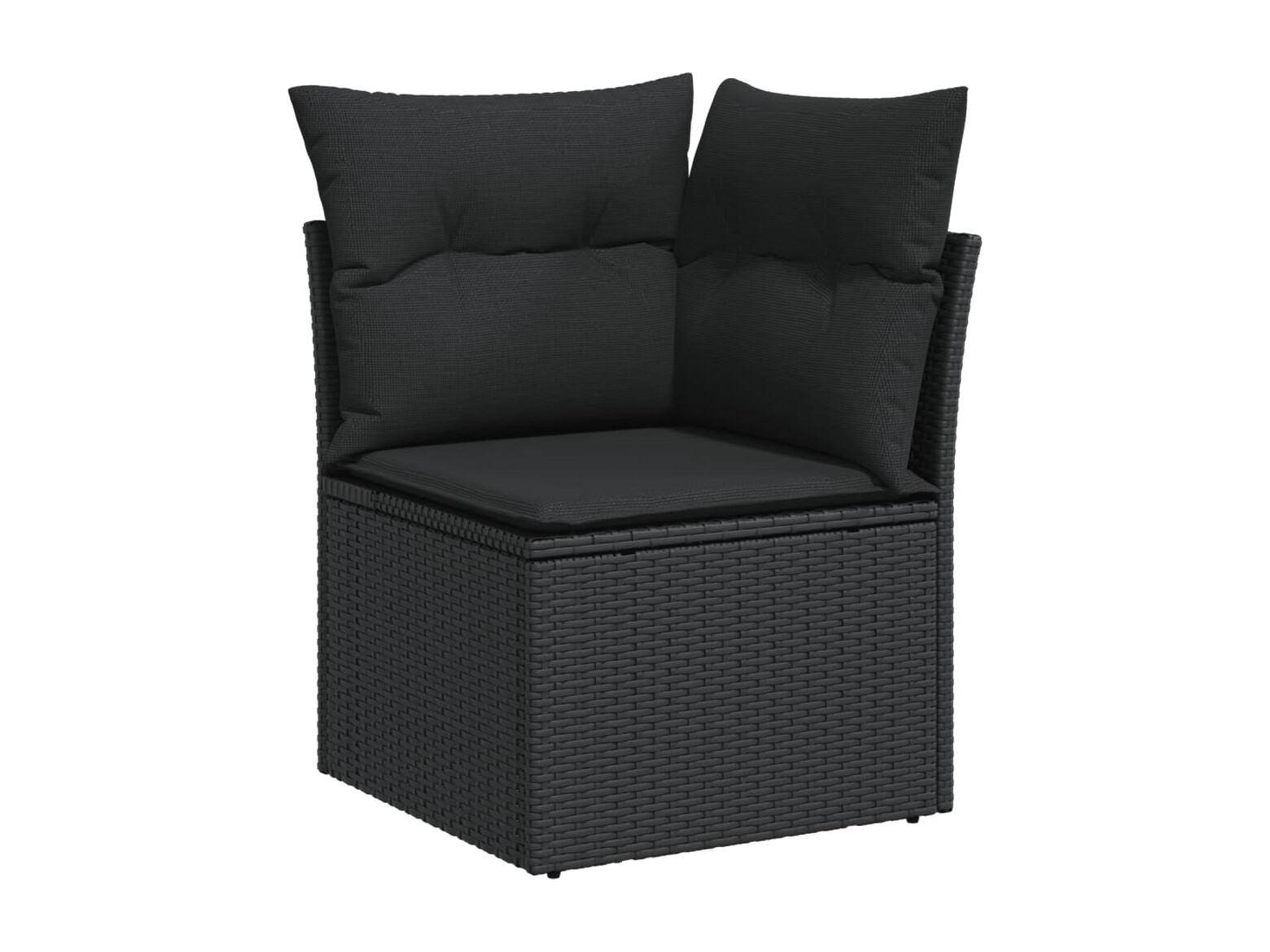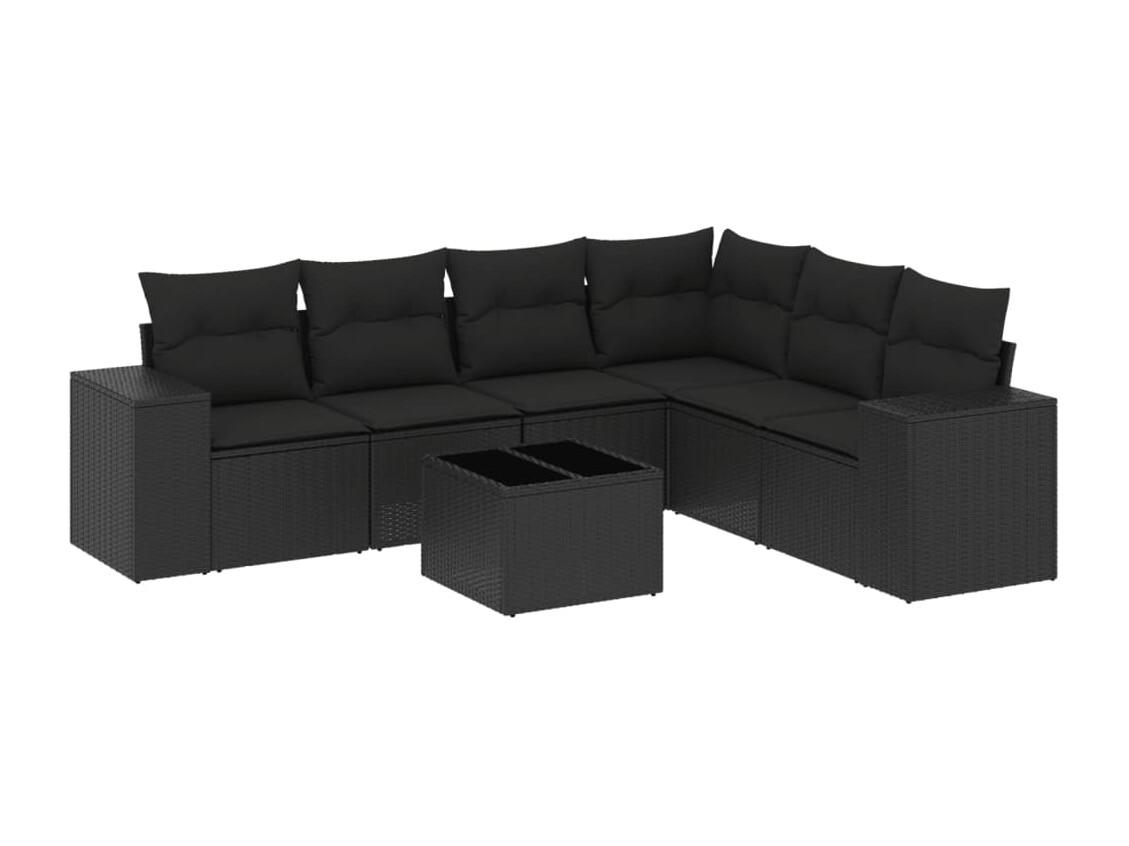 Salon de jardin 7 pièces avec coussins noir résine tressée