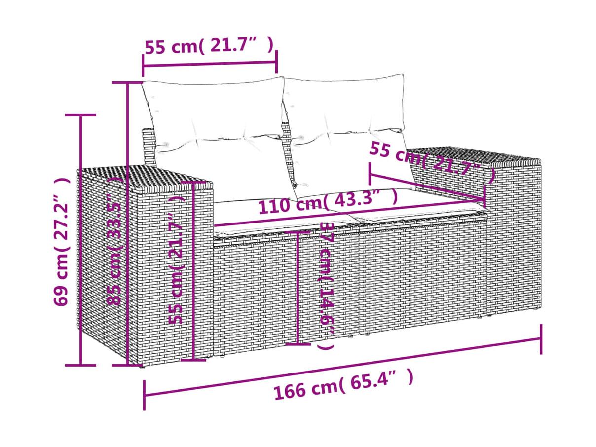 Salon de jardin 6 pcs avec coussins noir résine tressée