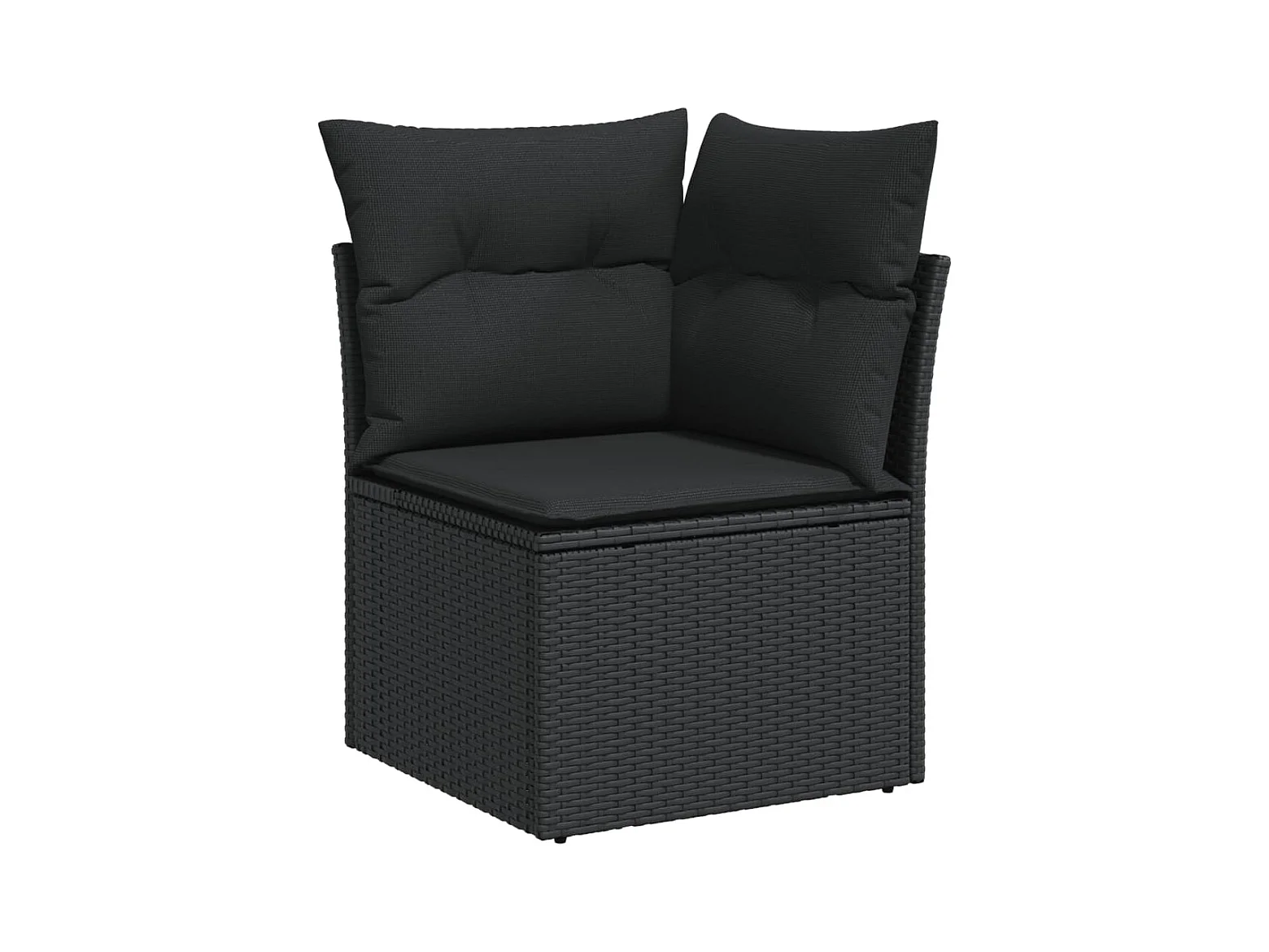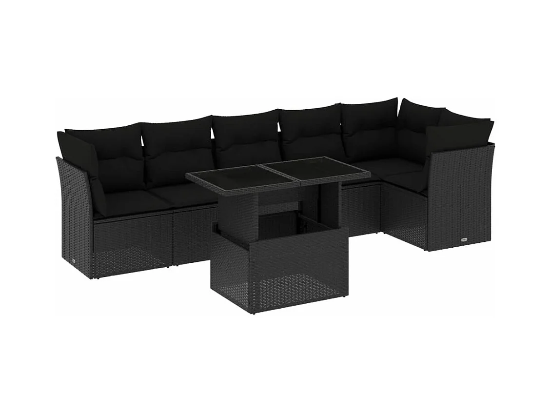 Salon de jardin 7 pièces avec coussins noir résine tressée
