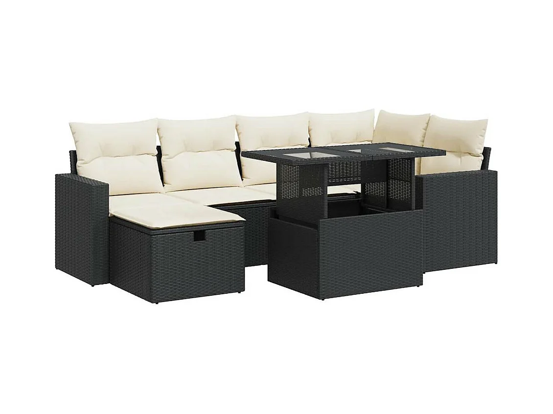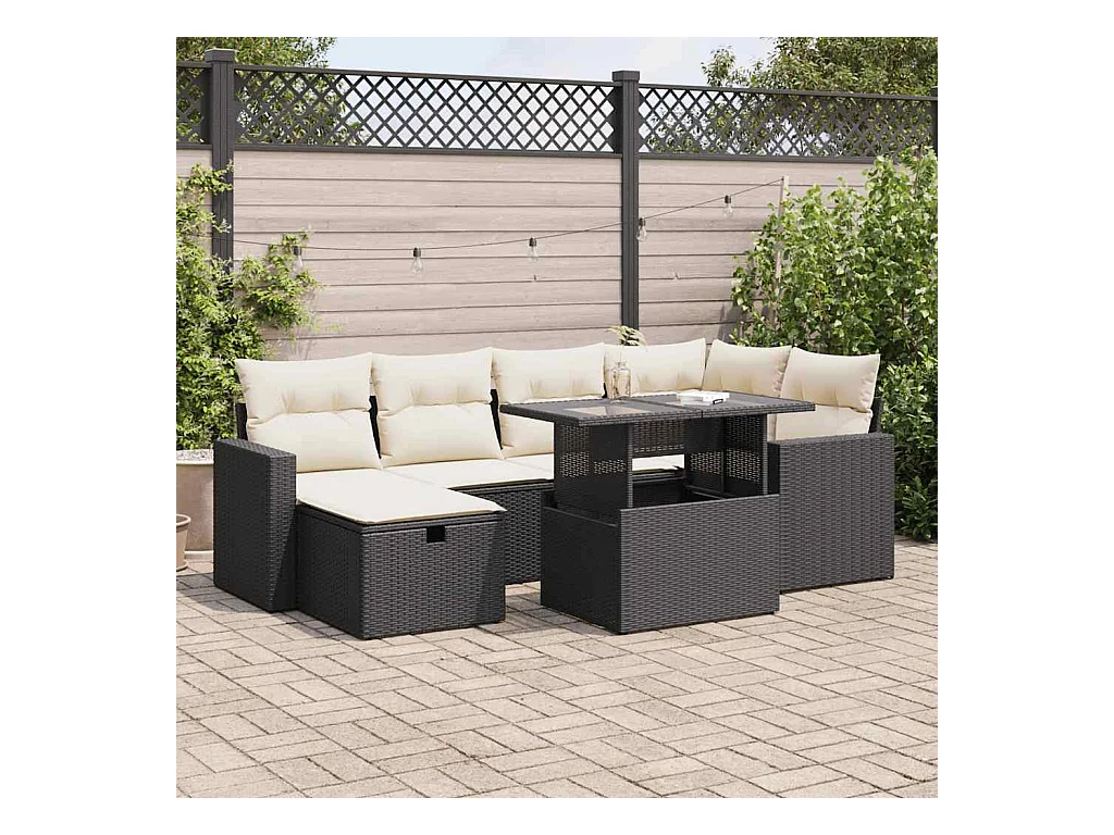 Salon de jardin 7 pièces avec coussins noir résine tressée