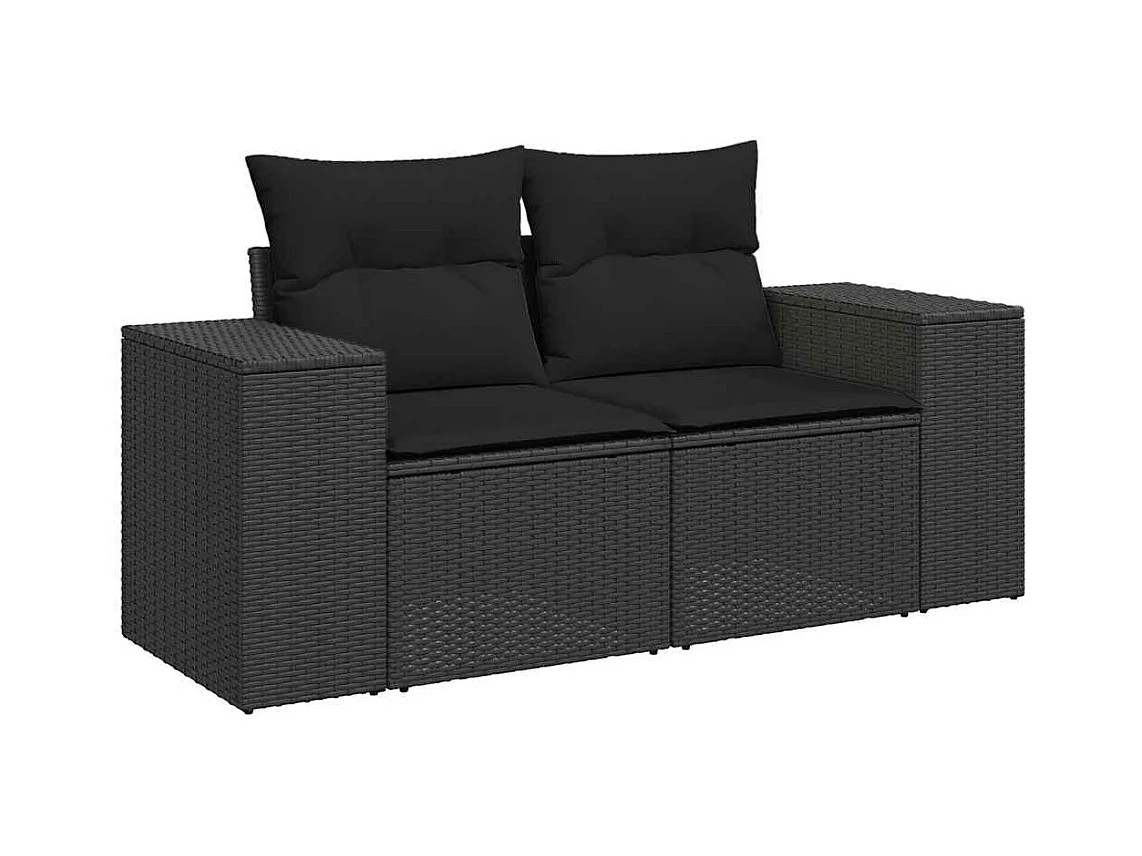 Salon de jardin 7 pièces avec coussins noir résine tressée