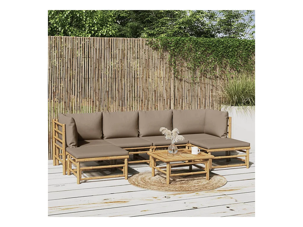 Salon de jardin 7 pièces avec coussins taupe bambou