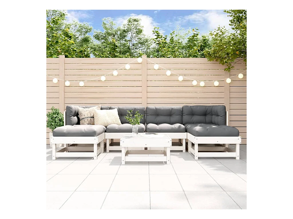 Salon de jardin 6 pcs Blanc Bois de pin massif BE50699