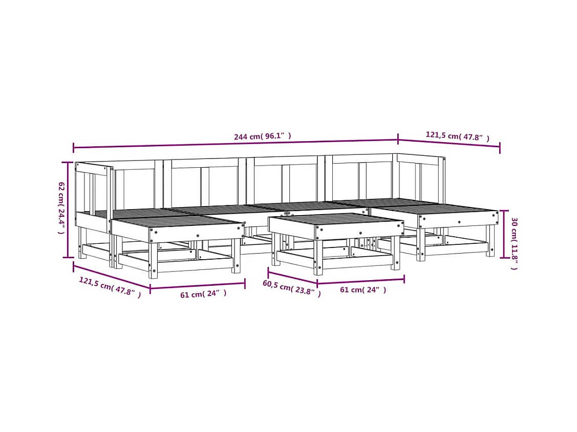 Salon de jardin 6 pcs Blanc Bois de pin massif BE70007