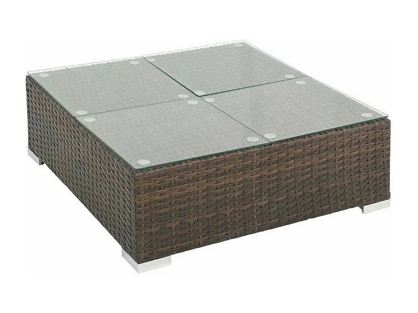 Salon de jardin 7 pièces résine tressée marron et coussins blanc Blanca