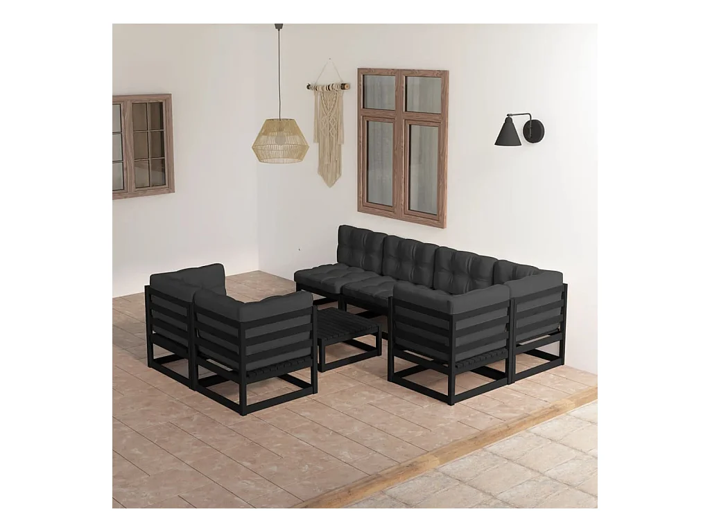Salon de jardin 8 pcs avec coussins Noir PVC