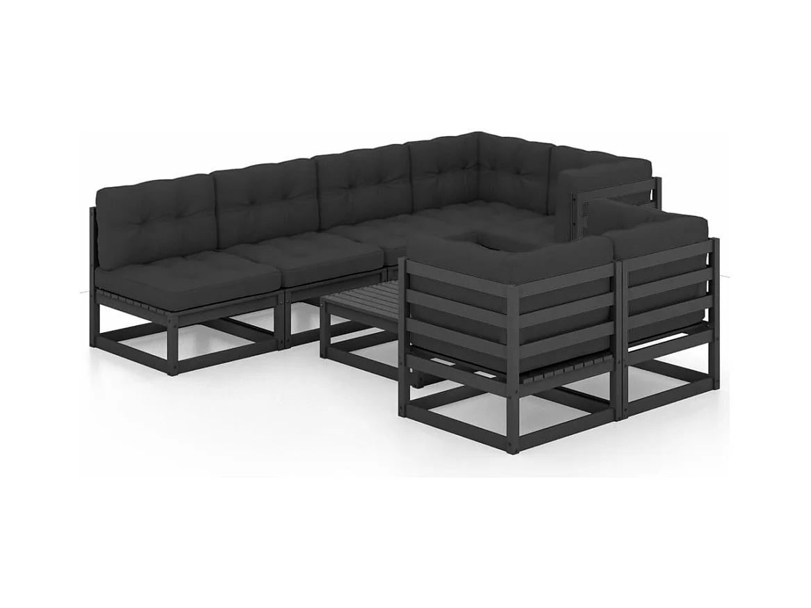 Salon de jardin 8 pcs avec coussins Bois de pin massif