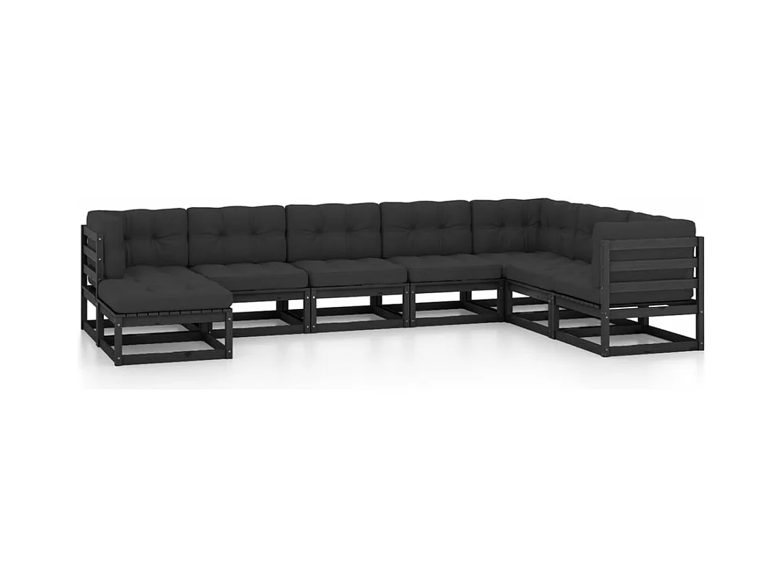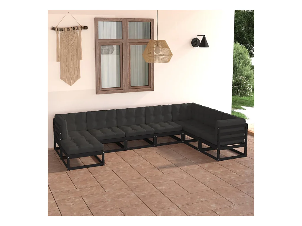 Salon de jardin 8 pcs avec coussins Noir PVC