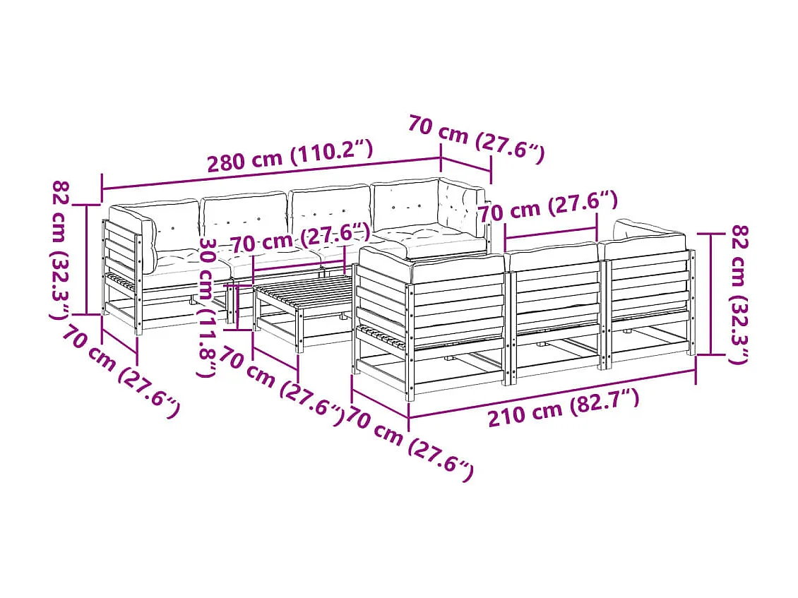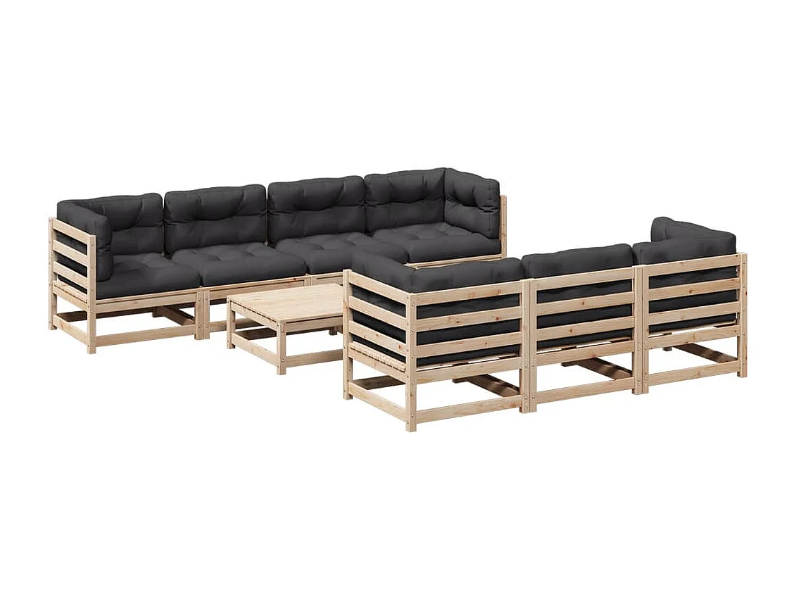 Salon de jardin 8 pcs avec coussins bois de pin massif