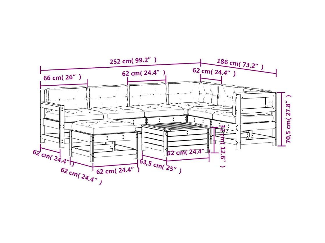 Salon de jardin 8 pcs avec coussins bois de pin imprégné