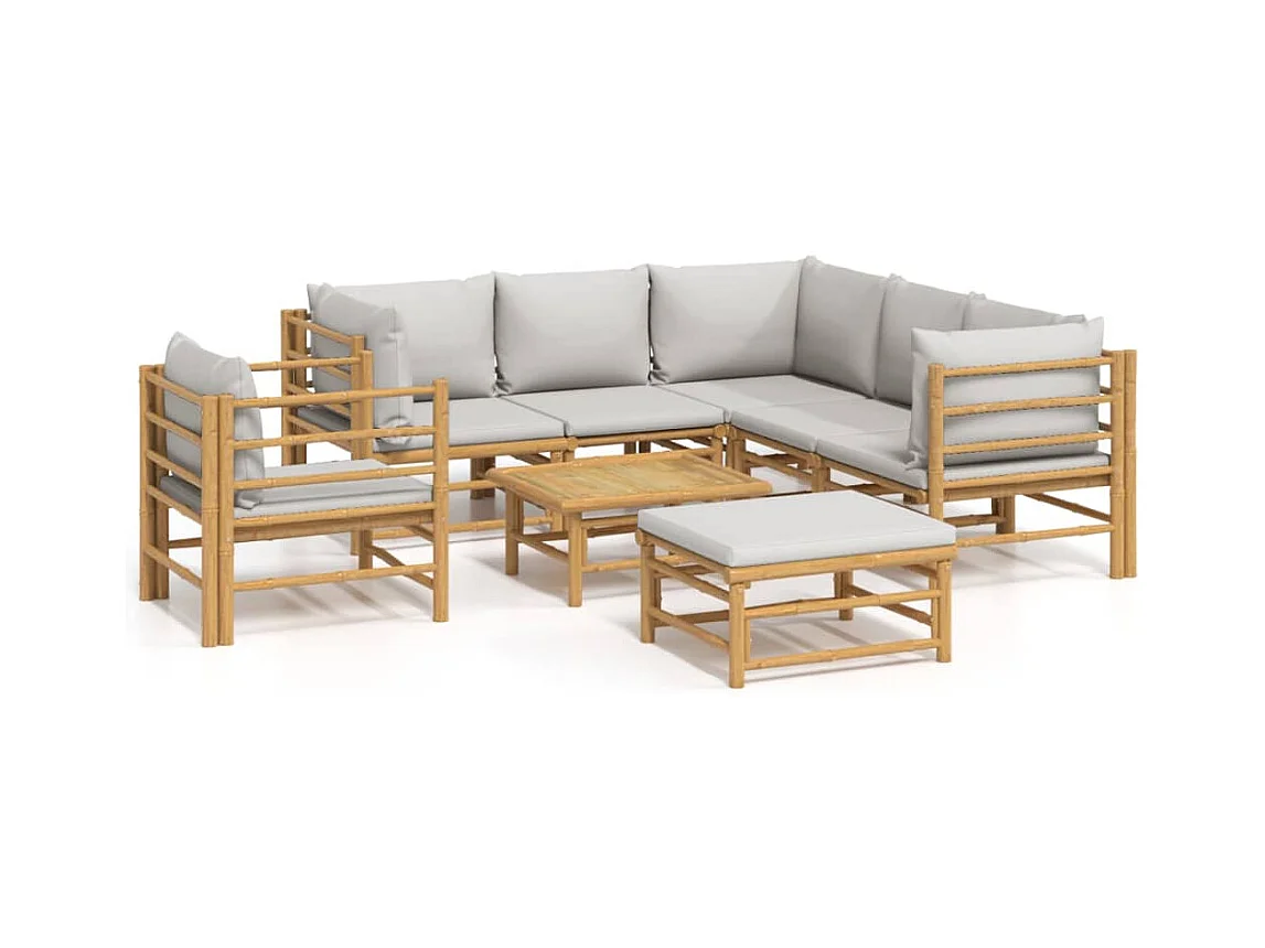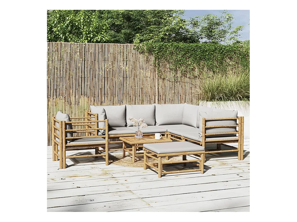 Salon de jardin 8 pcs avec coussins gris clair bambou