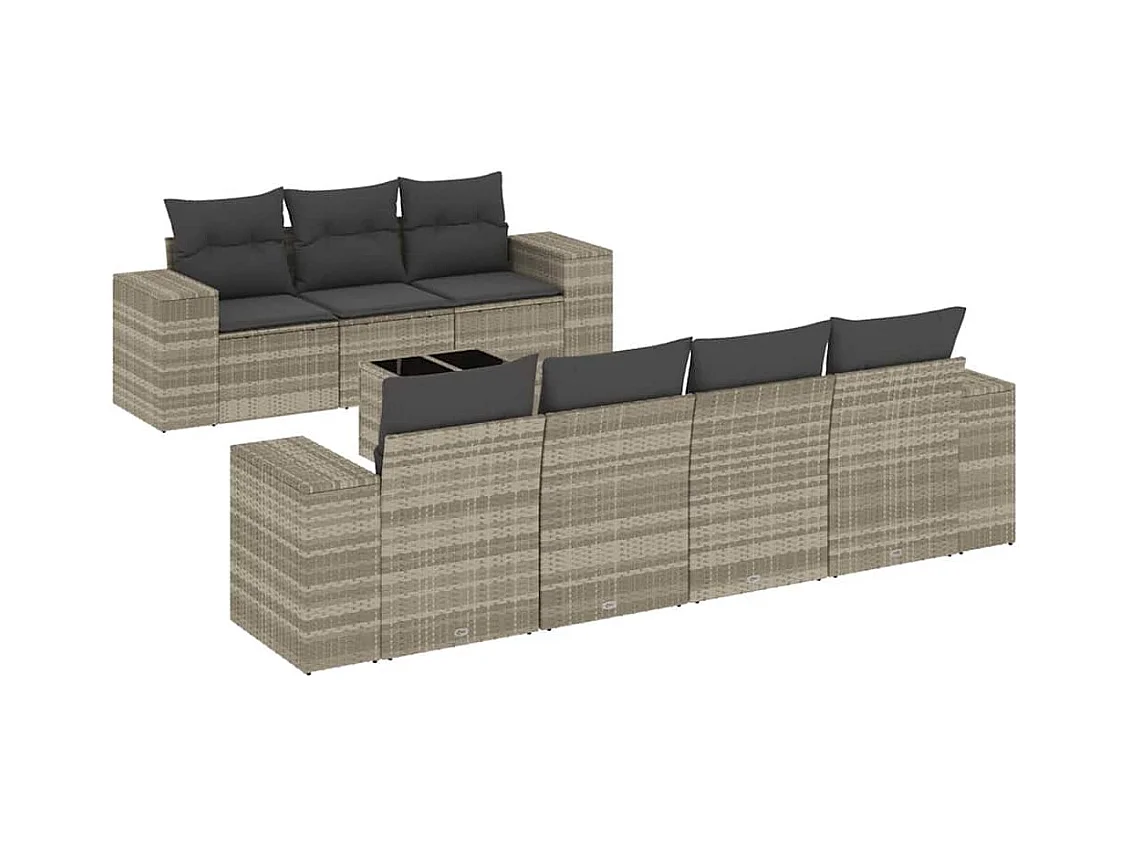 Salon de jardin 8 pcs avec coussins gris clair résine tressée