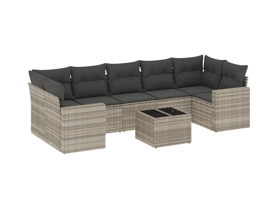 Salon de jardin 8 pcs avec coussins gris clair résine tressée