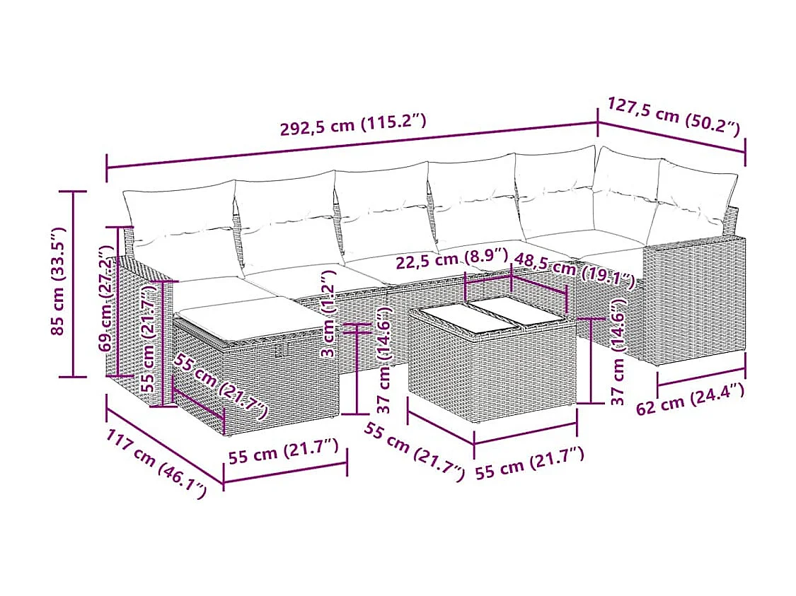 Salon de jardin 8 pcs avec coussins gris résine tressée