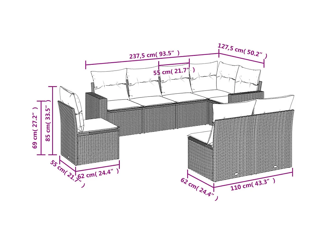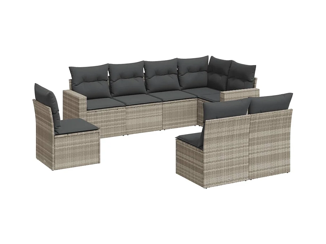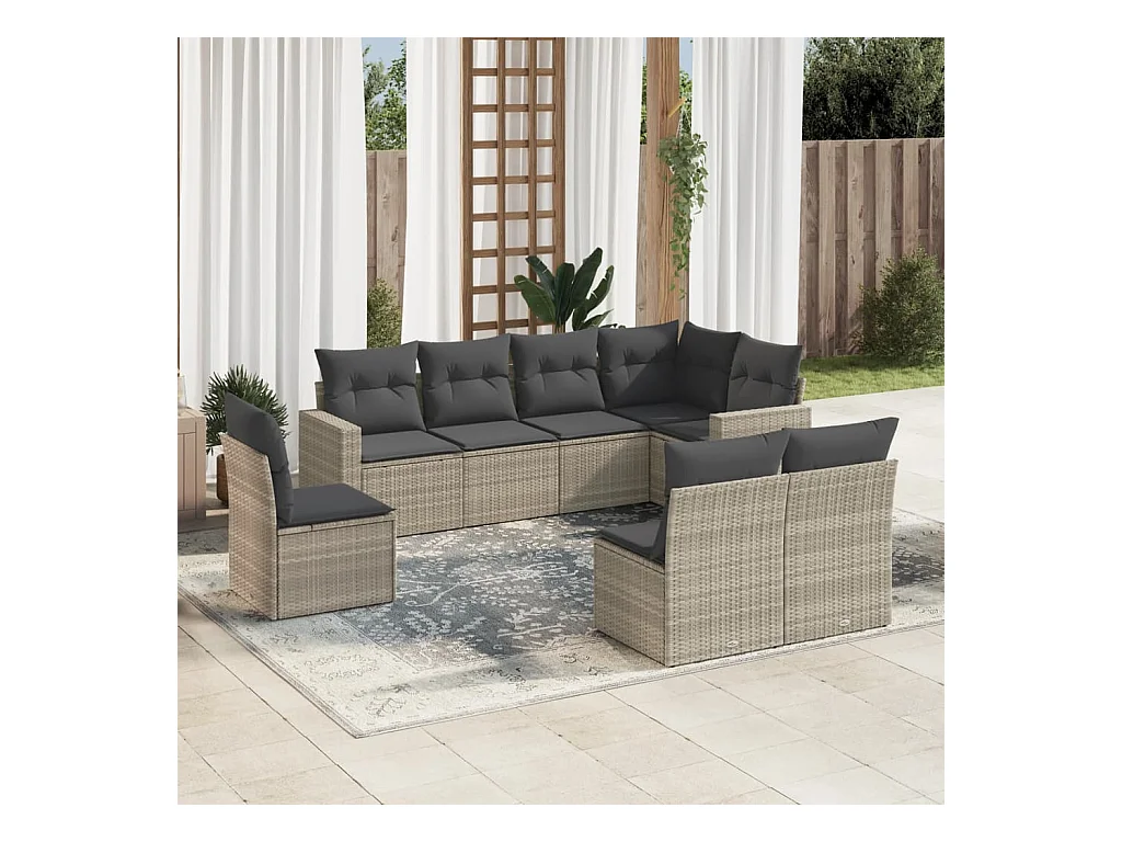 Salon de jardin 8 pcs avec coussins gris clair résine tressée