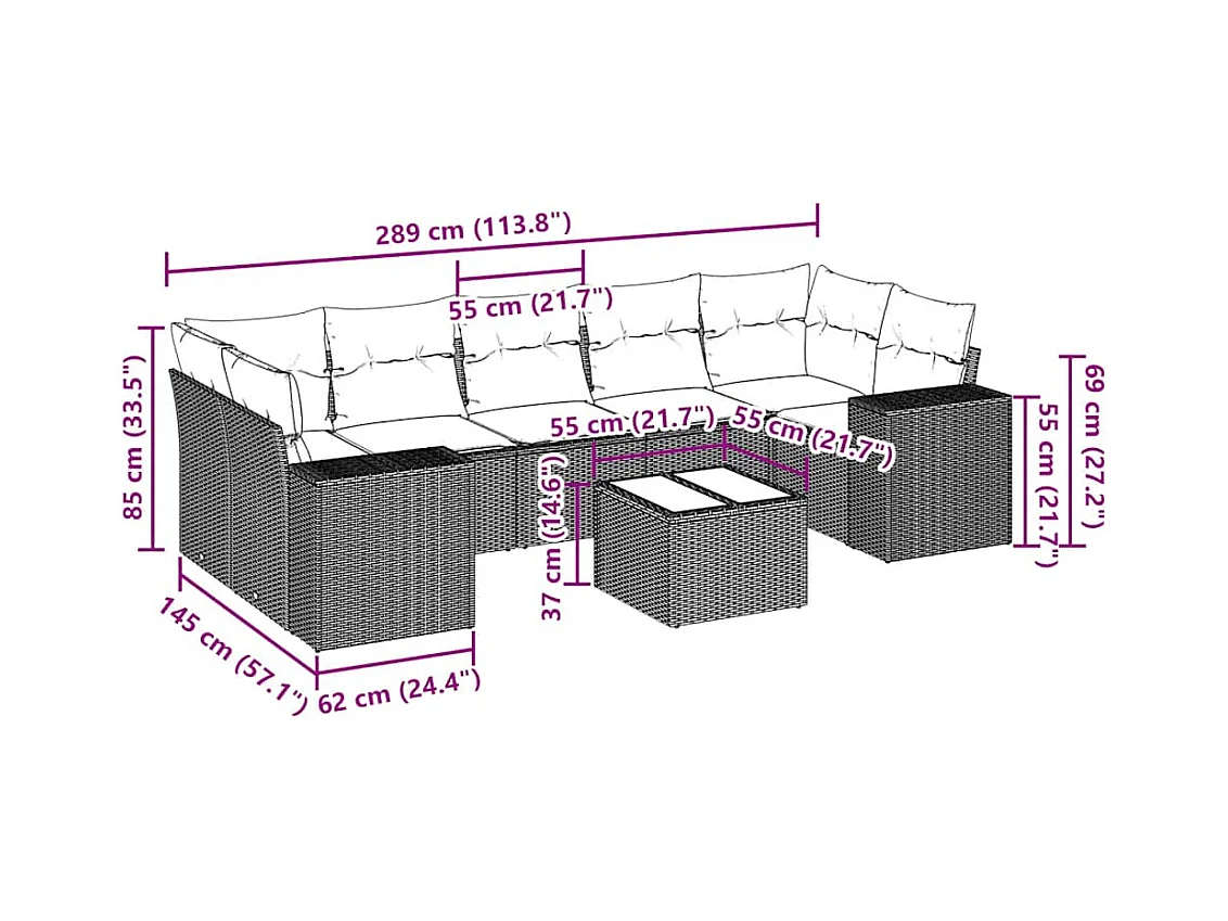 Salon de jardin 8 pcs avec coussins gris clair résine tressée