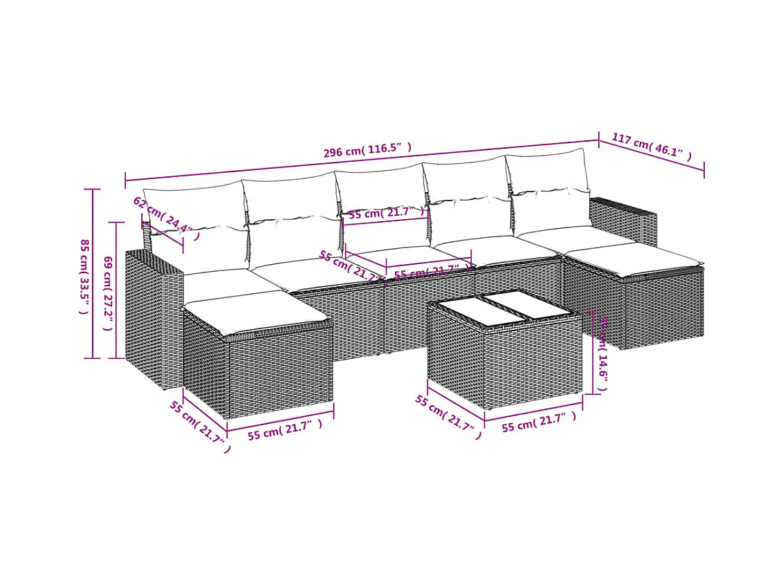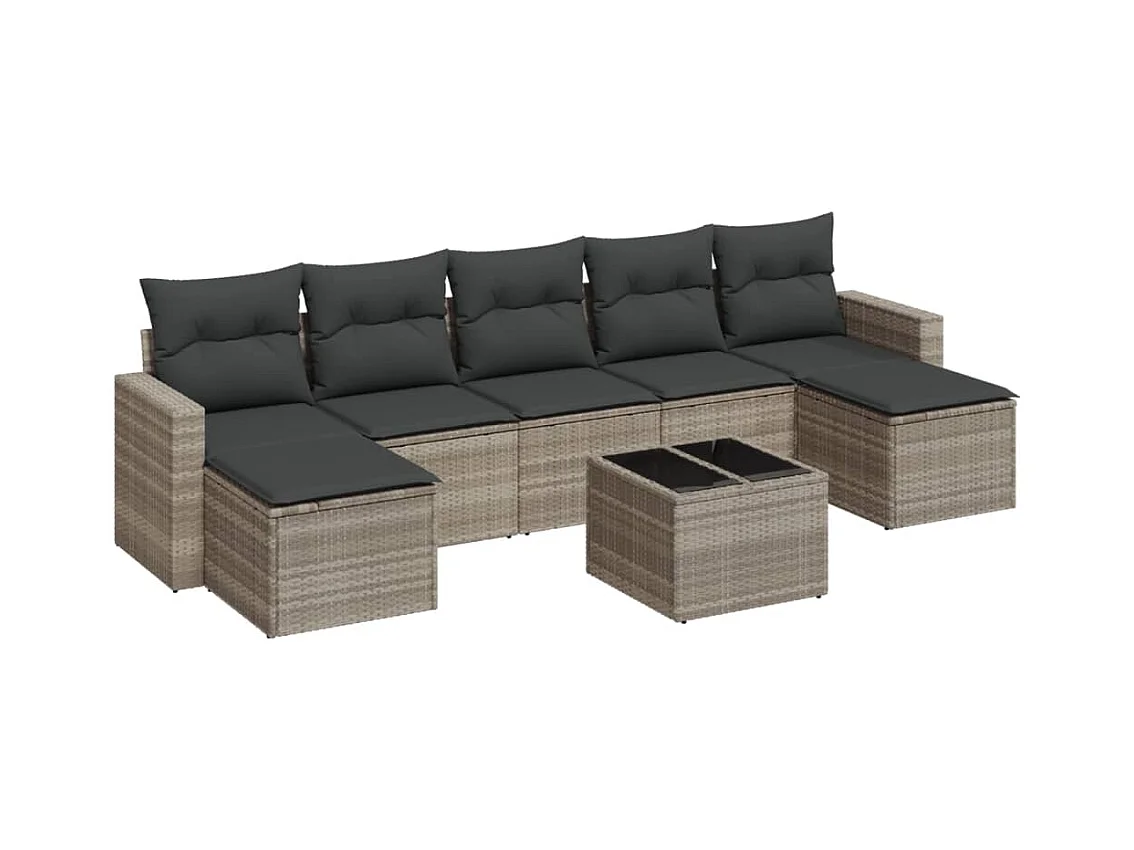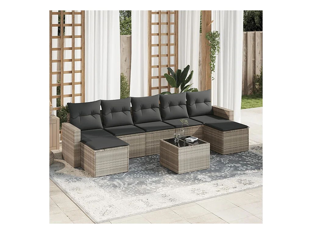 Salon de jardin 8 pcs avec coussins gris clair résine tressée