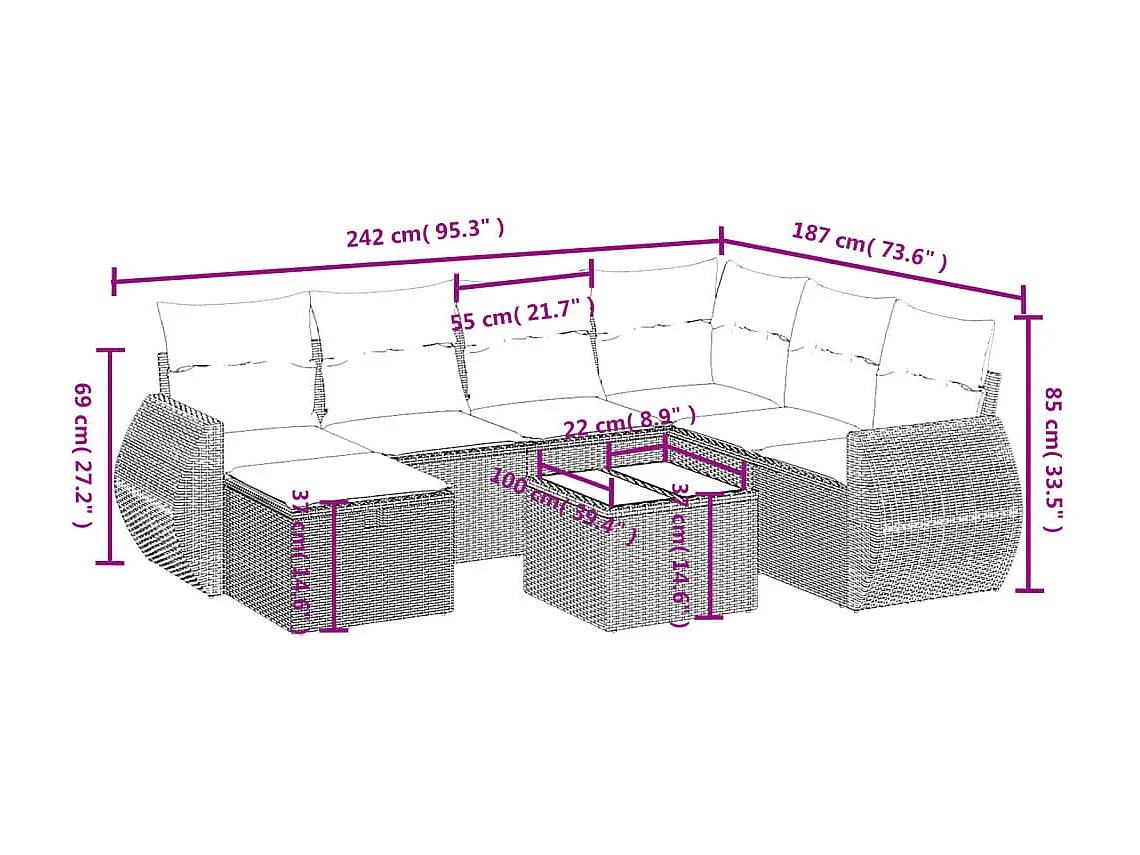 Salon de jardin 8 pcs avec coussins gris clair résine tressée