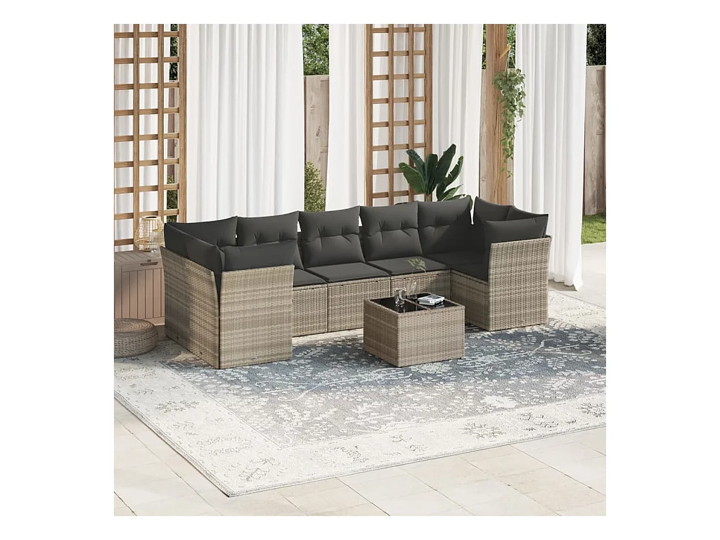 Salon de jardin 8 pcs avec coussins gris clair résine tressée