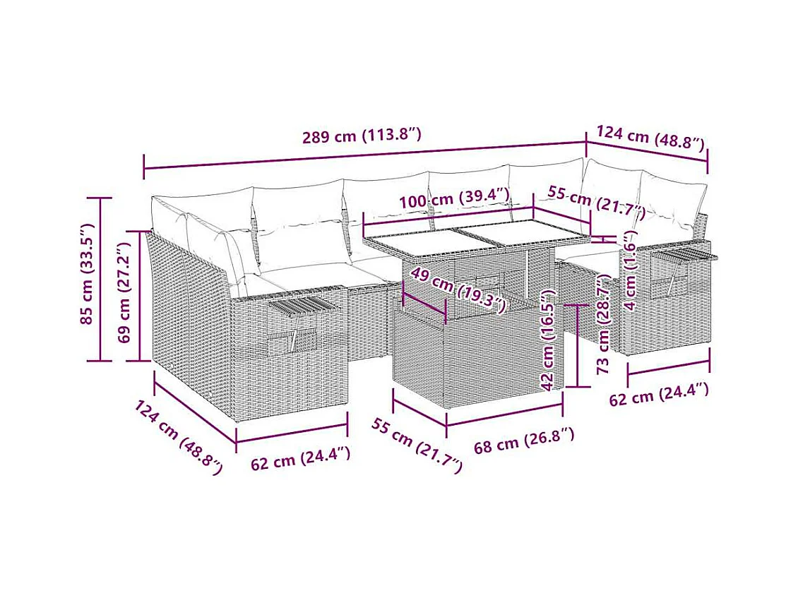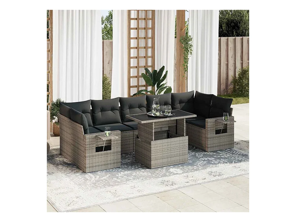 Salon de jardin 8 pcs avec coussins gris résine tressée