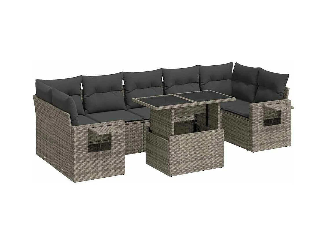Salon de jardin 9 pcs avec coussins gris résine tressée