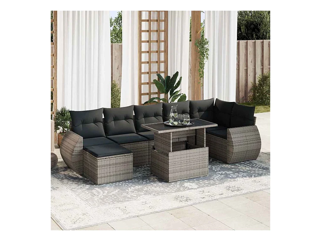 Salon de jardin 7 pcs avec coussins gris résine tressée