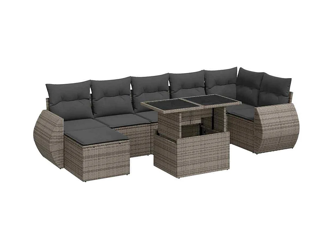 Salon de jardin 8 pcs avec coussins gris résine tressée