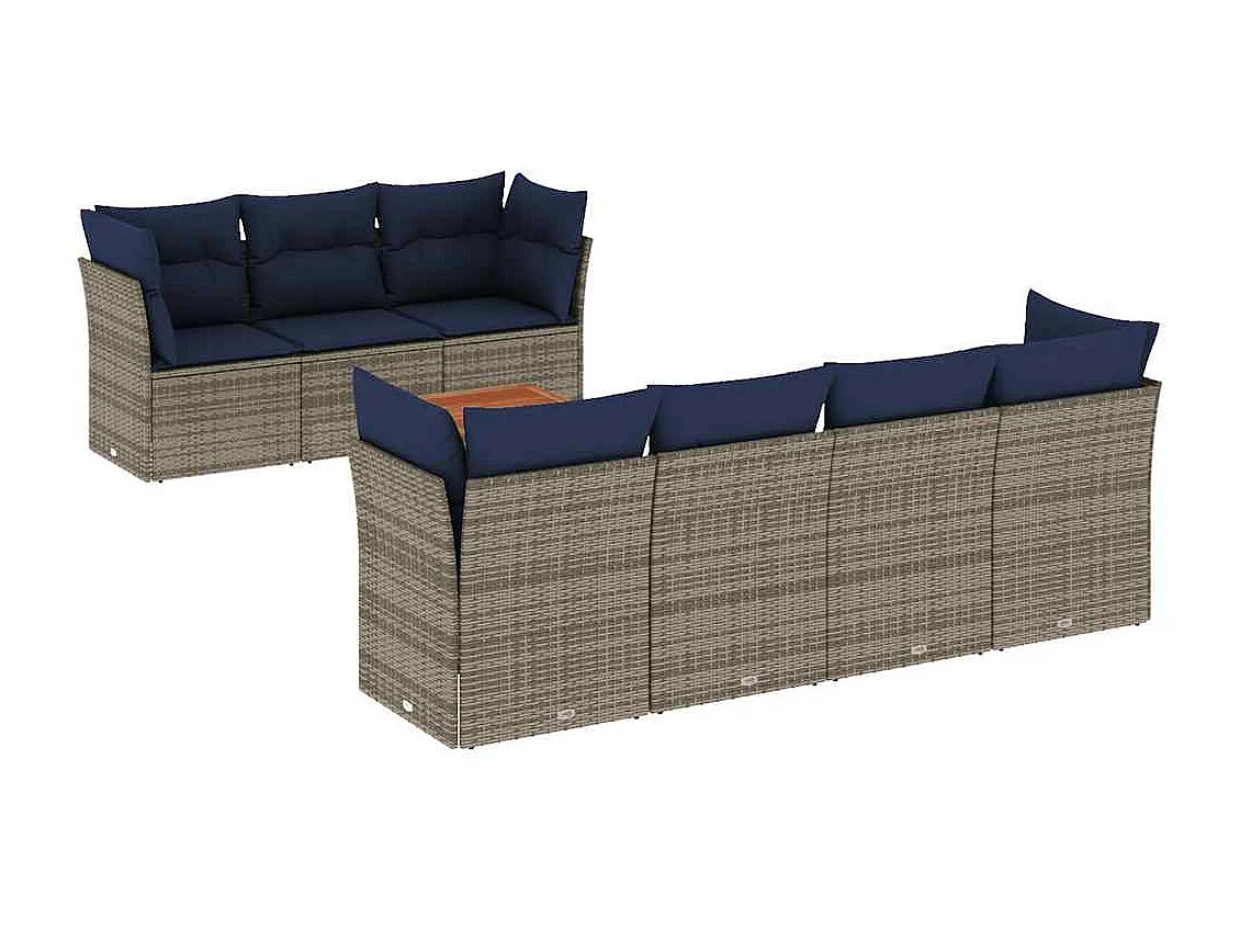 Salon de jardin 8 pcs avec coussins gris résine tressée
