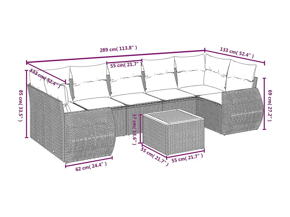 Salon de jardin 8 pcs avec coussins gris résine tressée