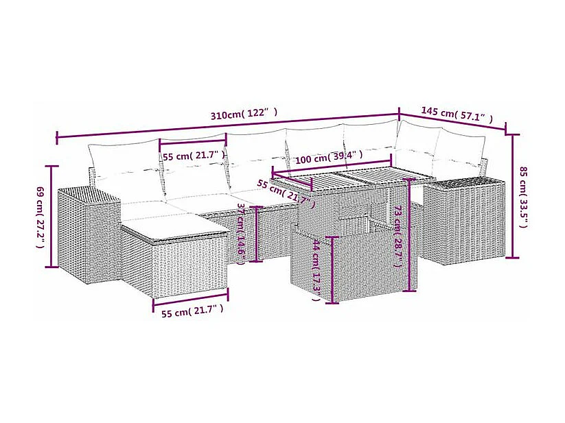 Salon de jardin 8 pcs avec coussins gris résine tressée