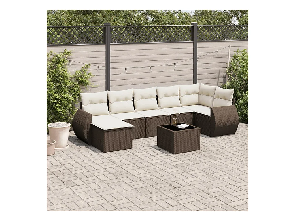 Salon de jardin 8 pcs avec coussins marron résine tressée