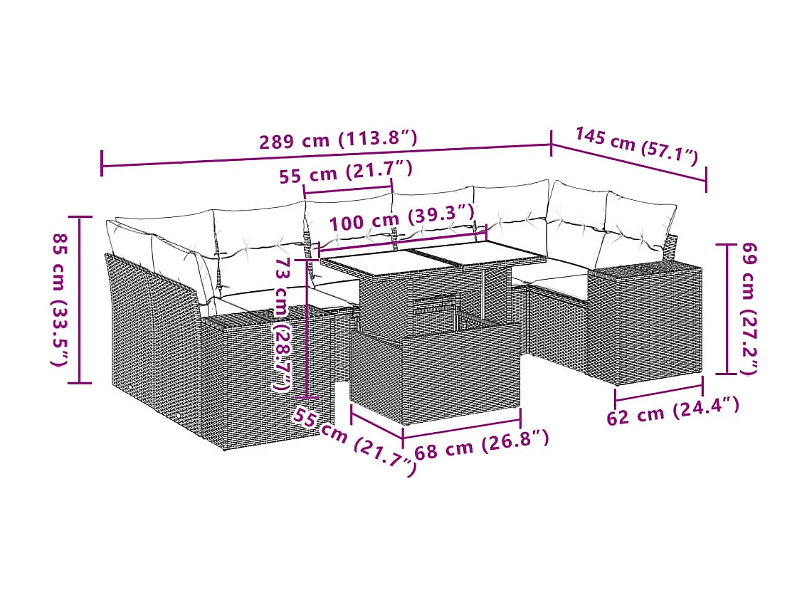 Salon de jardin 8 pcs avec coussins marron résine tressée