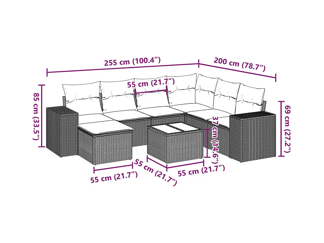 Salon de jardin 8 pcs avec coussins marron résine tressée