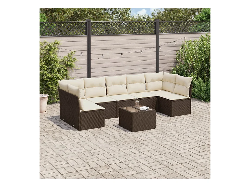 Salon de jardin 8 pcs avec coussins marron résine tressée