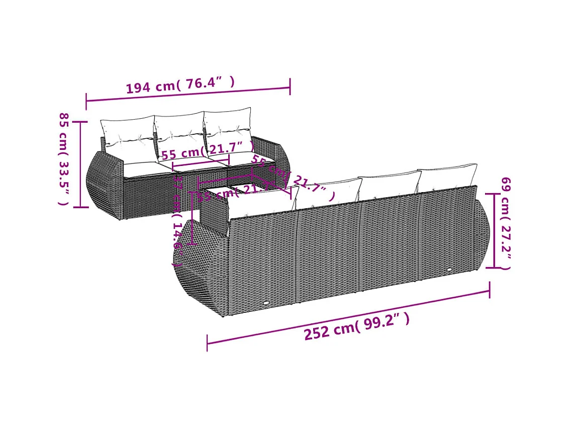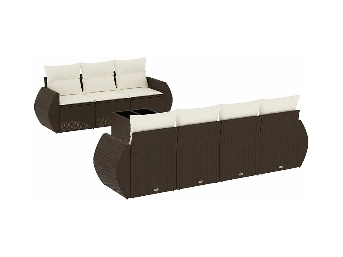 Salon de jardin 8 pcs avec coussins marron résine tressée