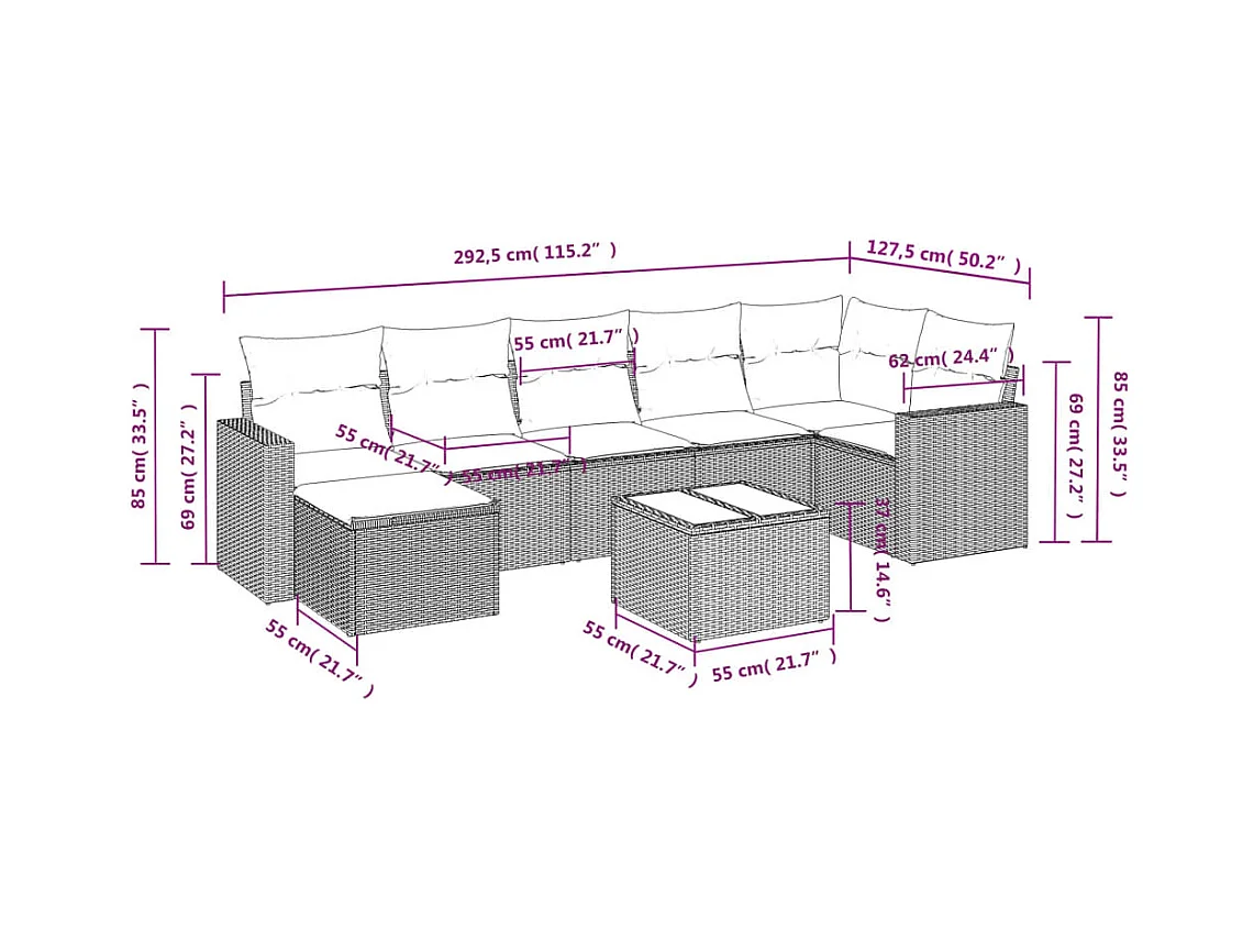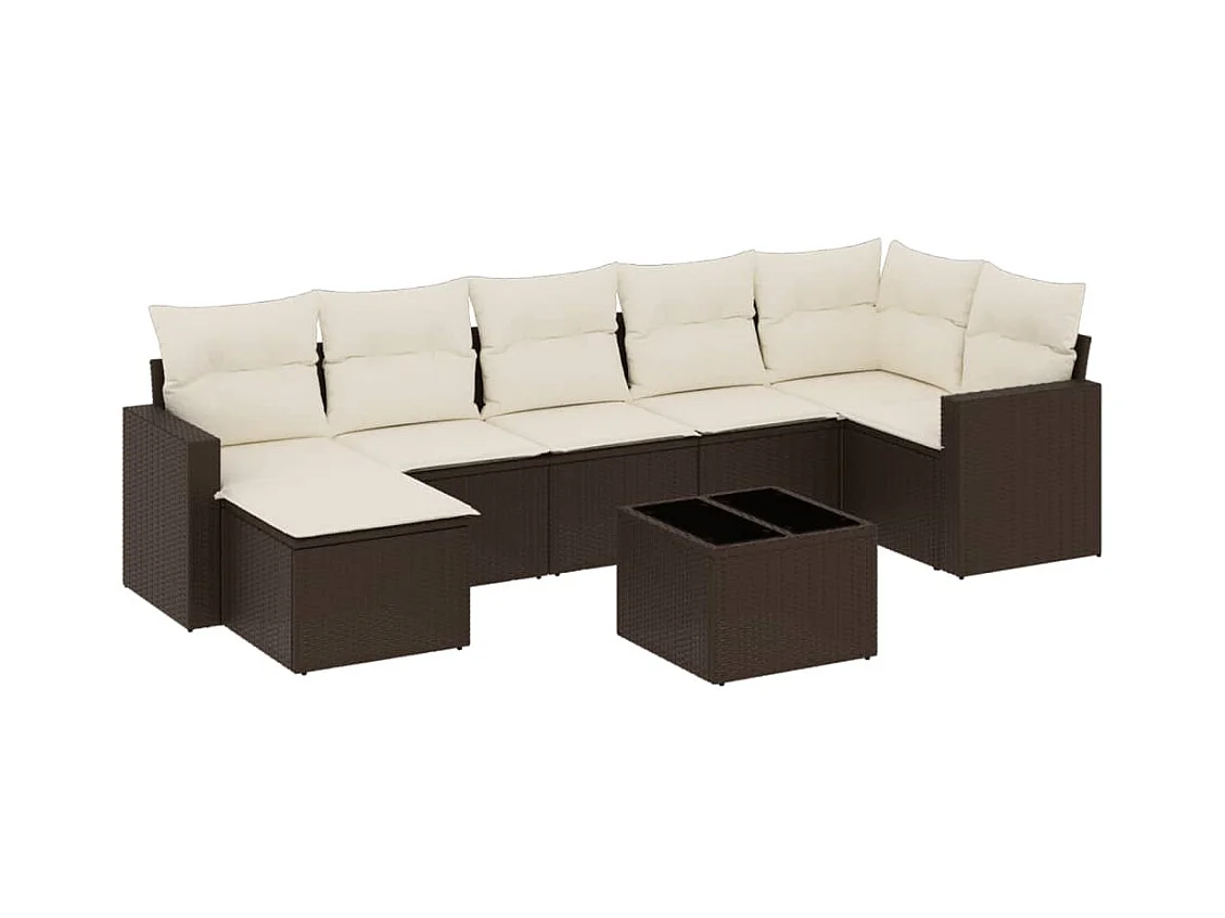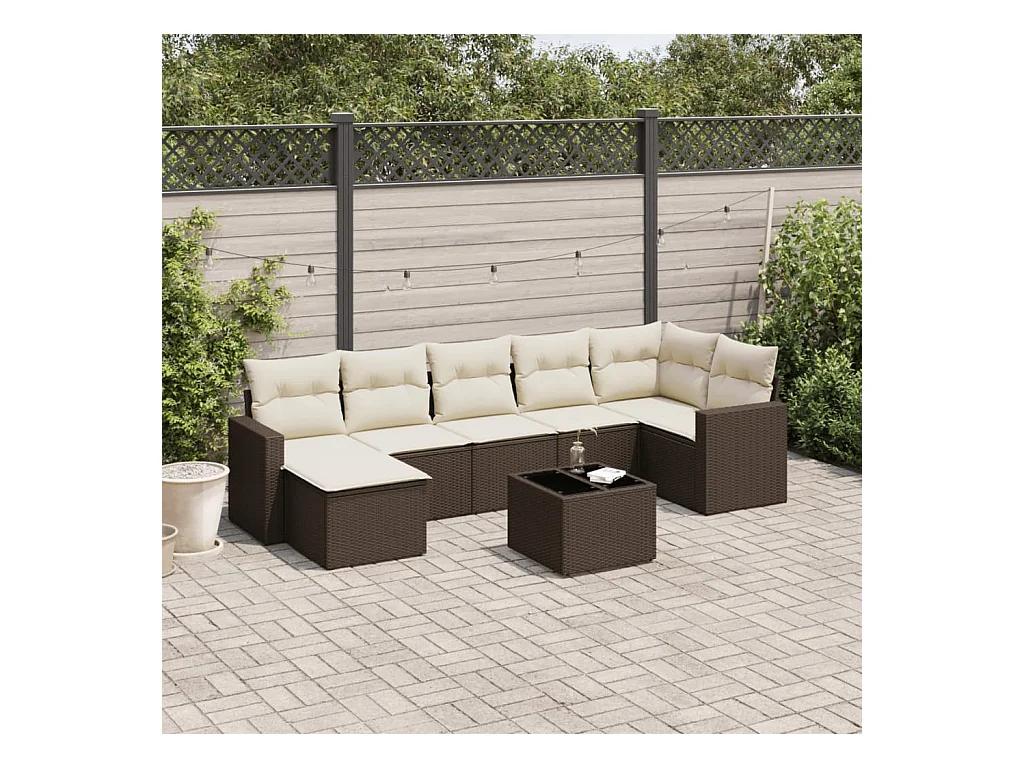 Salon de jardin 8 pcs avec coussins marron résine tressée